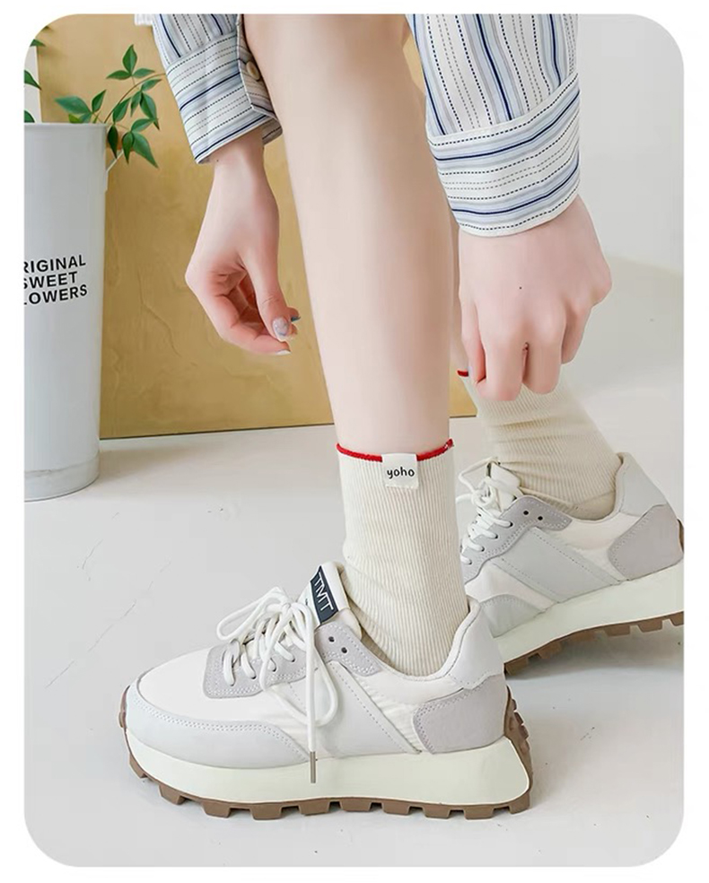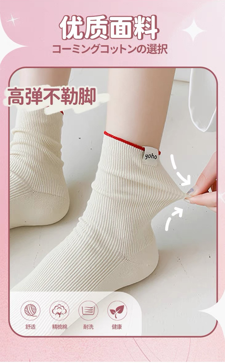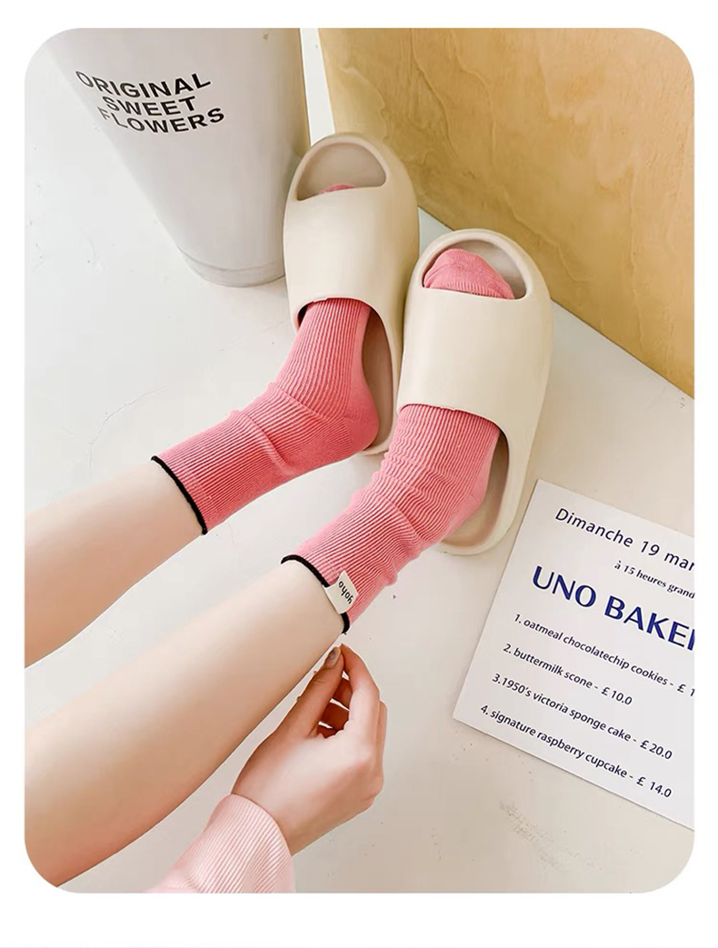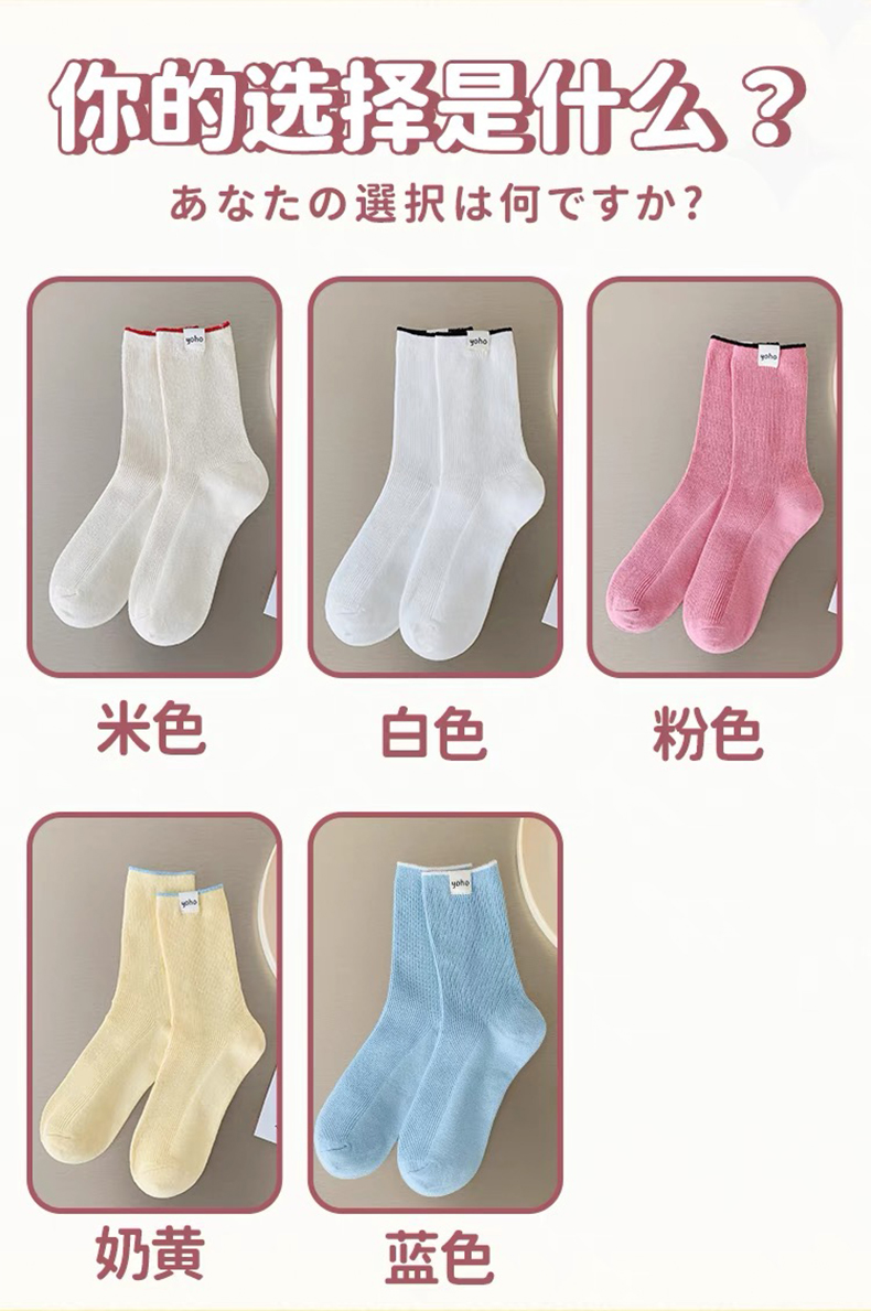 商品名称:【5双装】朝暮栖止小布标袜子女中筒袜春秋季薄款细条堆堆袜ins韩版潮棉袜