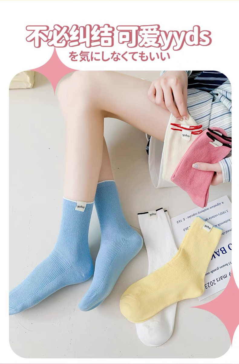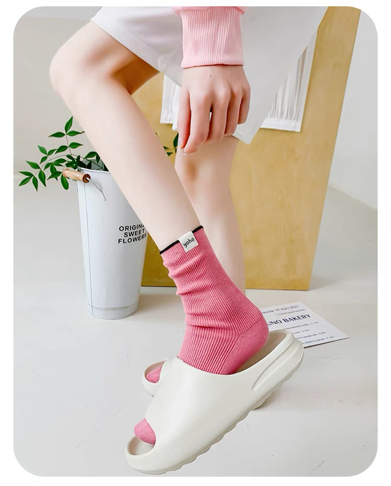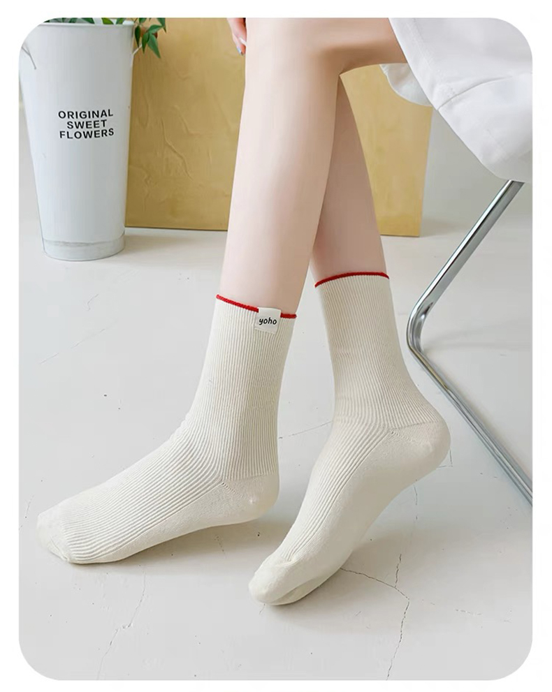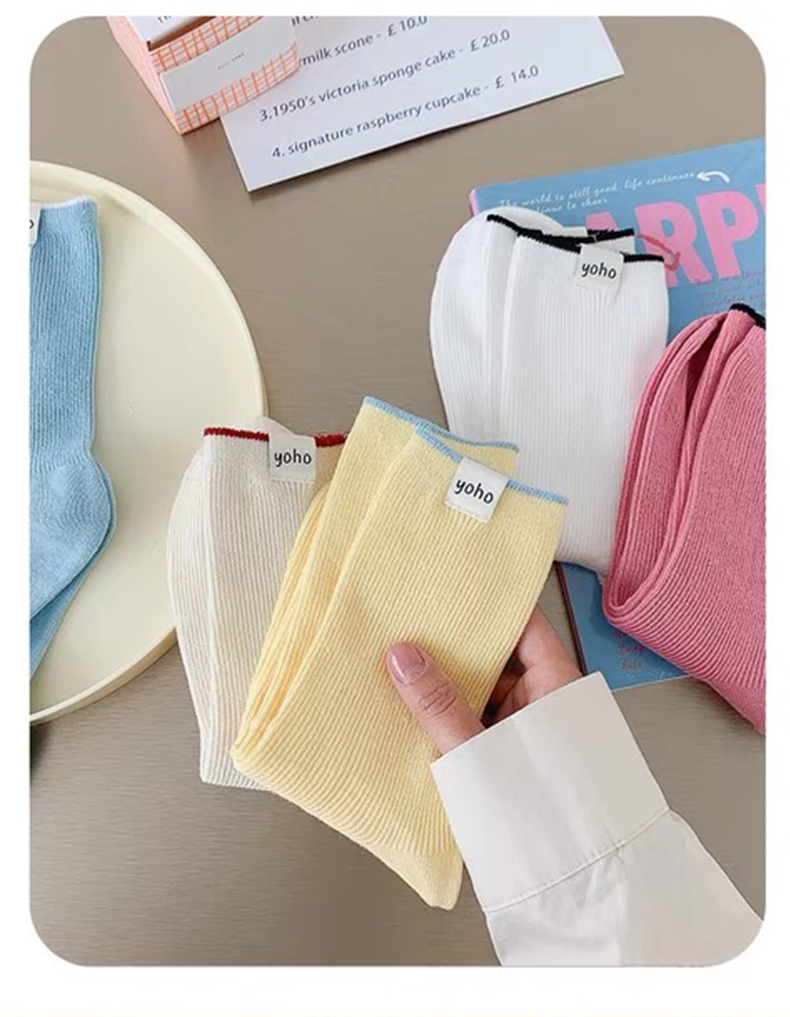 【5双装】朝暮栖止小布标袜子女中筒袜春秋季薄款细条堆堆袜ins韩版潮棉袜