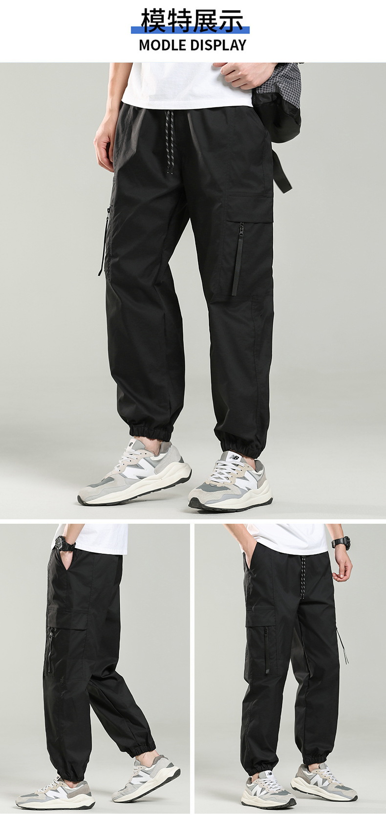 商品名称:曼西尔奴男士潮流宽松耐磨抽绳百搭舒适多口袋束脚工装裤225241TM