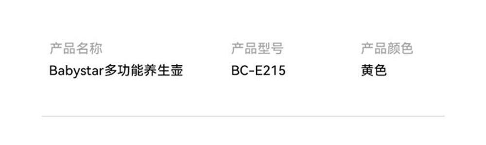商品名称:babystar 养生壶 BC-E215D单机款
