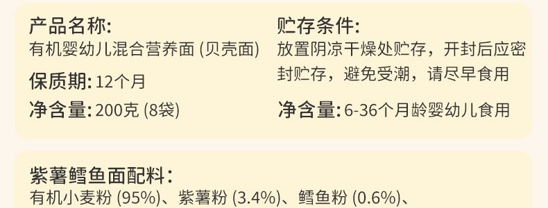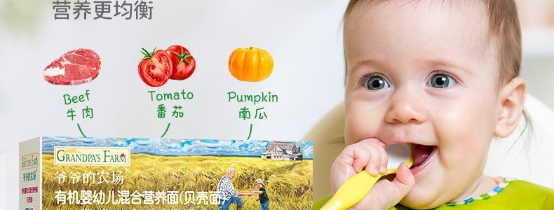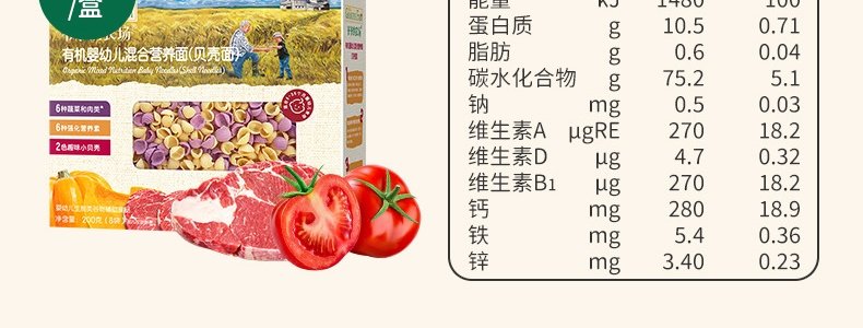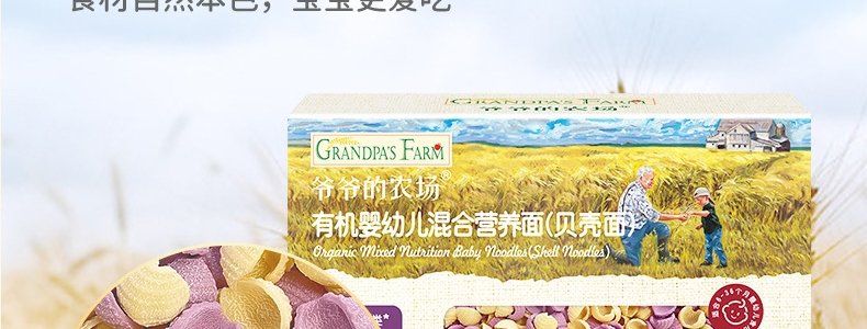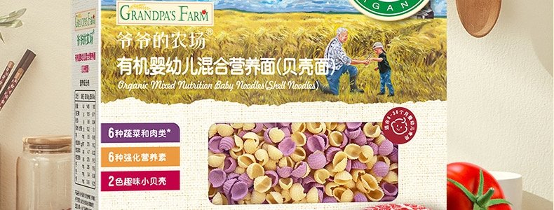 商品名称:法国 爷爷的农场(GRANDPA'S FARM)婴幼儿混合营养面(贝壳面)200g/盒