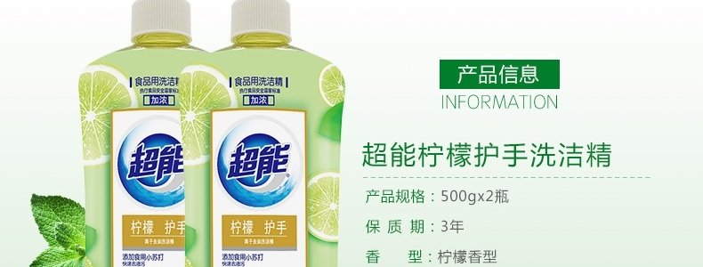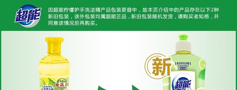 商品名称:超能 柠檬护手离子洗洁精 500g*2瓶 包装随机