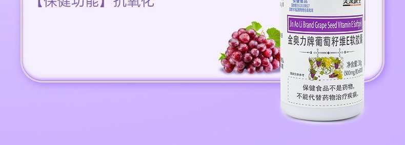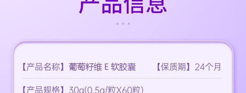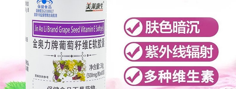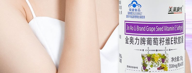商品名称:美莱康生 葡萄籽VE软胶囊60粒/瓶
