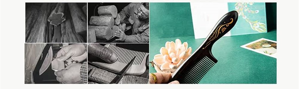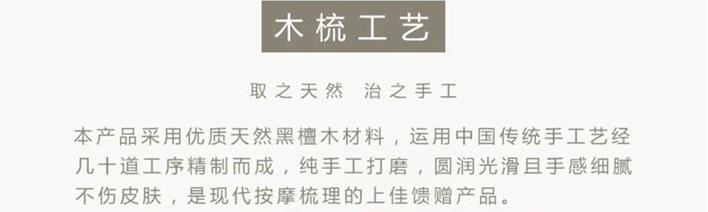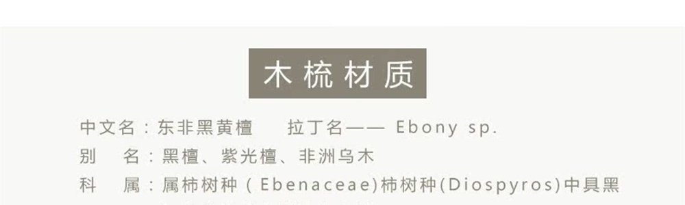 商品名称:梳美人 手工无静电天然黑檀木梳子
