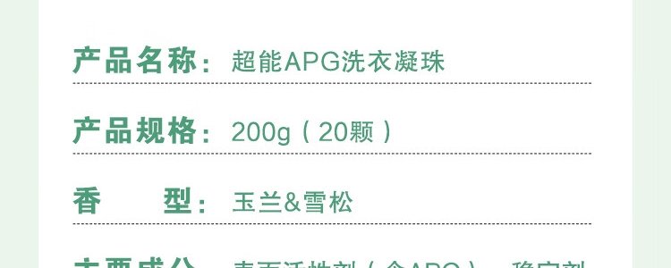 商品名称:超能 APG5腔洗衣凝珠 200g (20颗) 包装随机