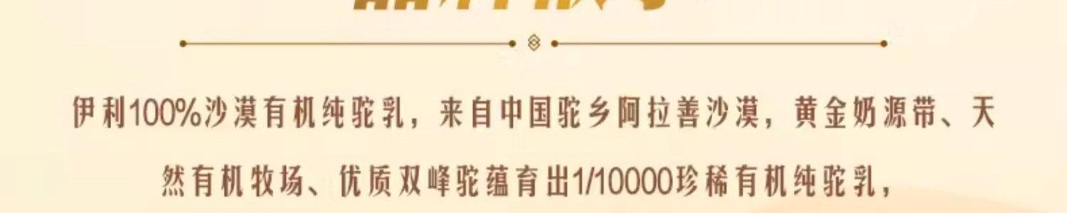 商品名称:伊利 有机纯骆驼奶粉 180g/罐(15g*12条)