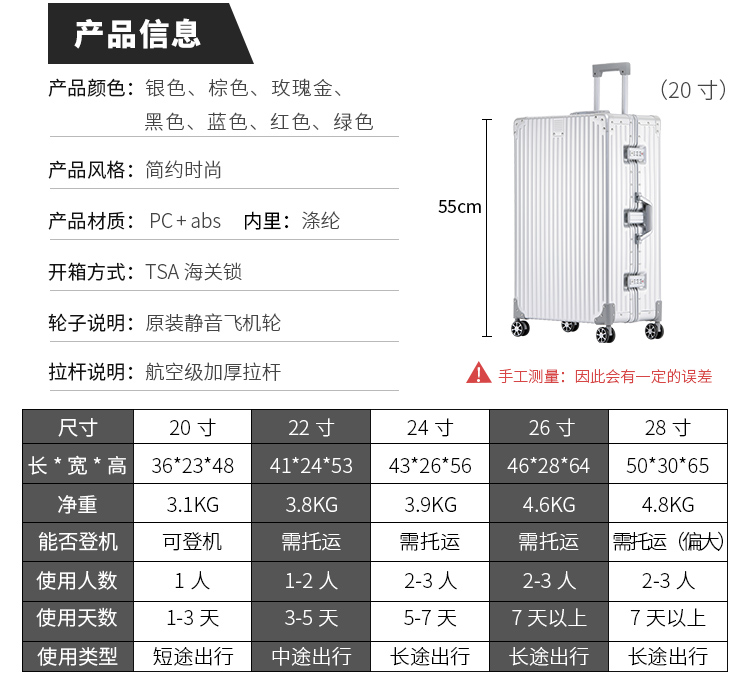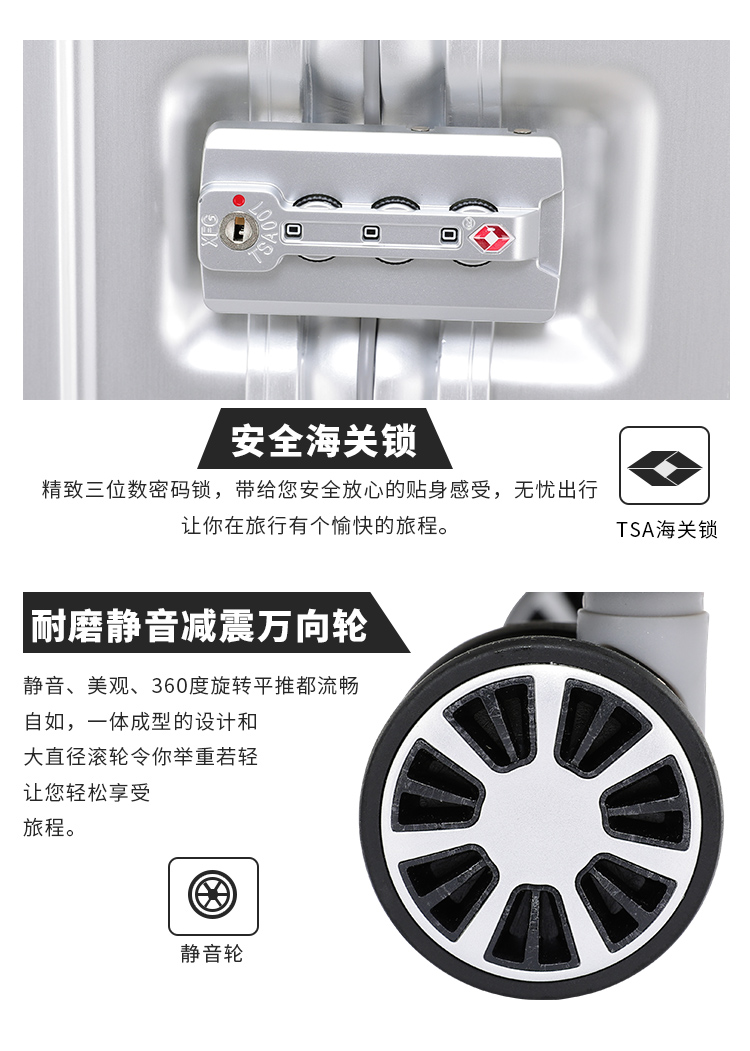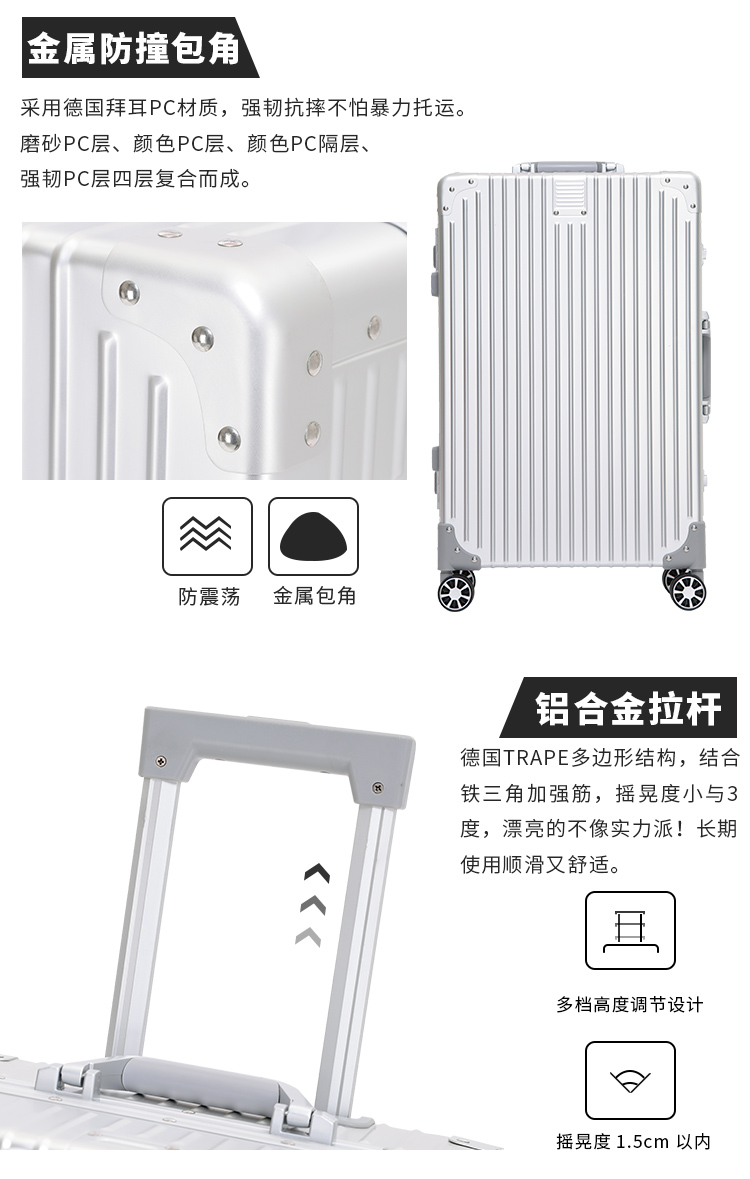 商品名称:纯奢奢品航空级全铝镁合金复古款旅行箱行李箱拉杆箱密码箱