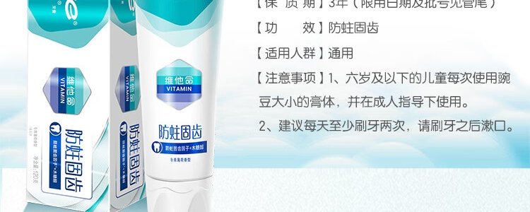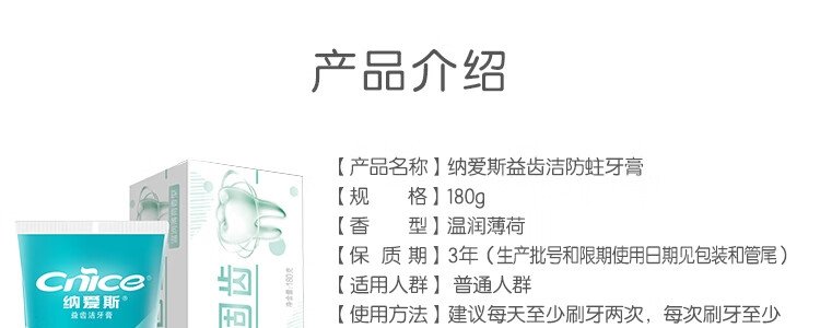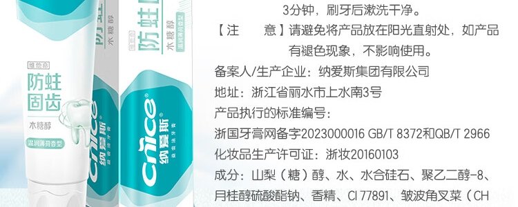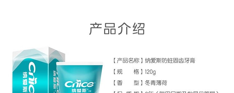 商品名称:纳爱斯 防蛀固齿牙膏 120gx2支 包装随机