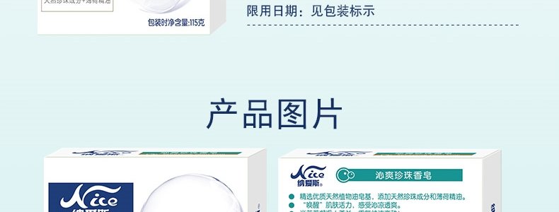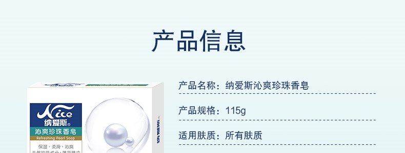 商品名称:纳爱斯 沁爽珍珠香皂 115g*2盒
