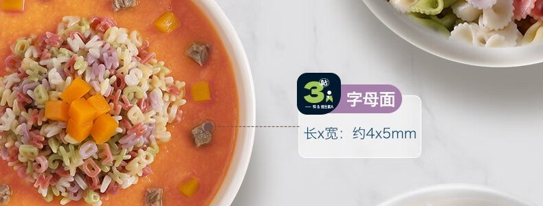 商品名称:禾泱泱 麦分龄婴幼儿字母面 五彩蔬果牛肉味 180g/盒 12月+