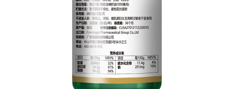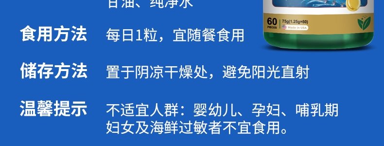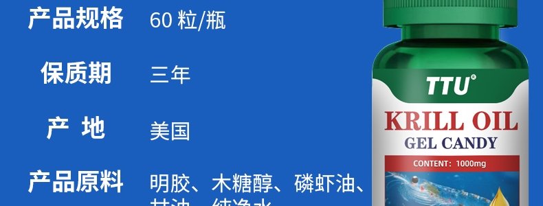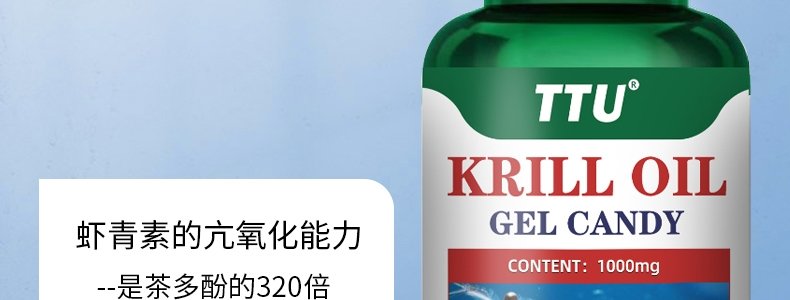 商品名称:美国 TTU 南极磷虾油凝胶糖果 60片/瓶