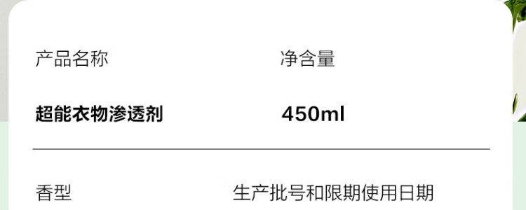 商品名称:超能 衣物渗透剂两瓶一泵(NG) 450ml*2瓶
