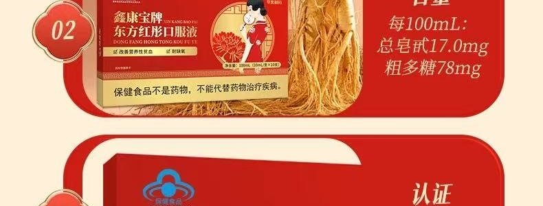 商品名称:鑫康宝 东方红彤口服液 10ml*10支