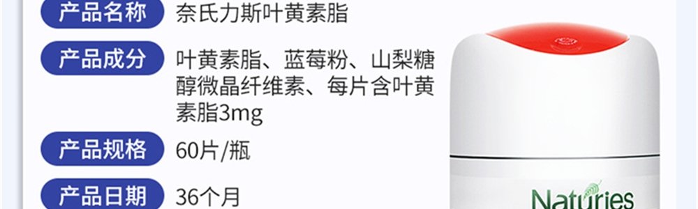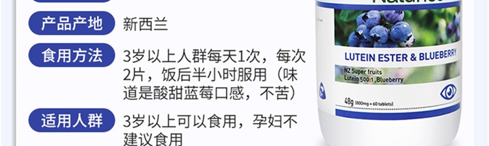 商品名称:新西兰 奈氏力斯(Naturie)进口叶黄素蓝莓片