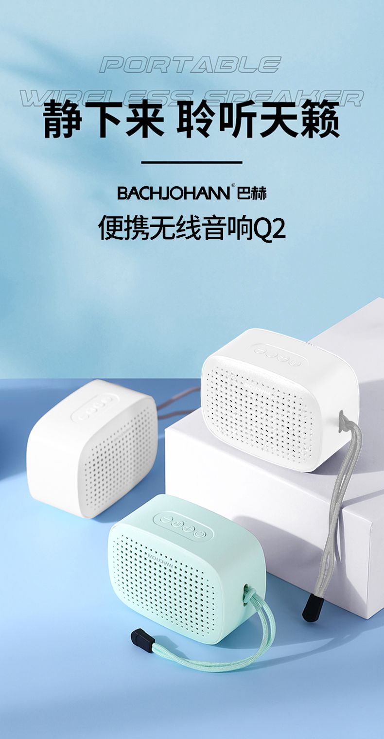 商品名称:bach johann巴赫约翰 Q2蓝牙音箱无线迷你便携式桌面户外大音量超重低音炮车载小钢炮小型音响 绿色