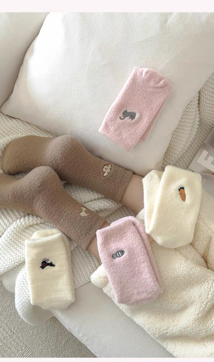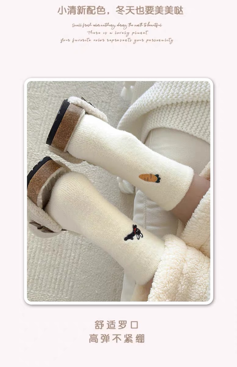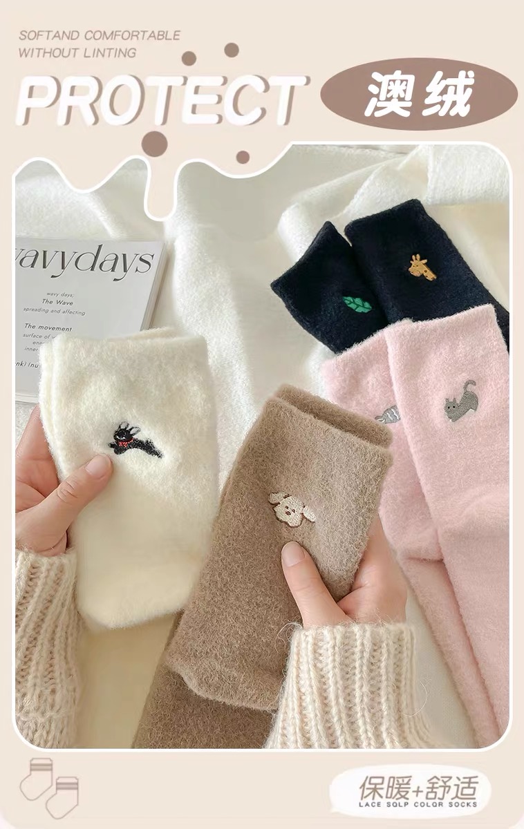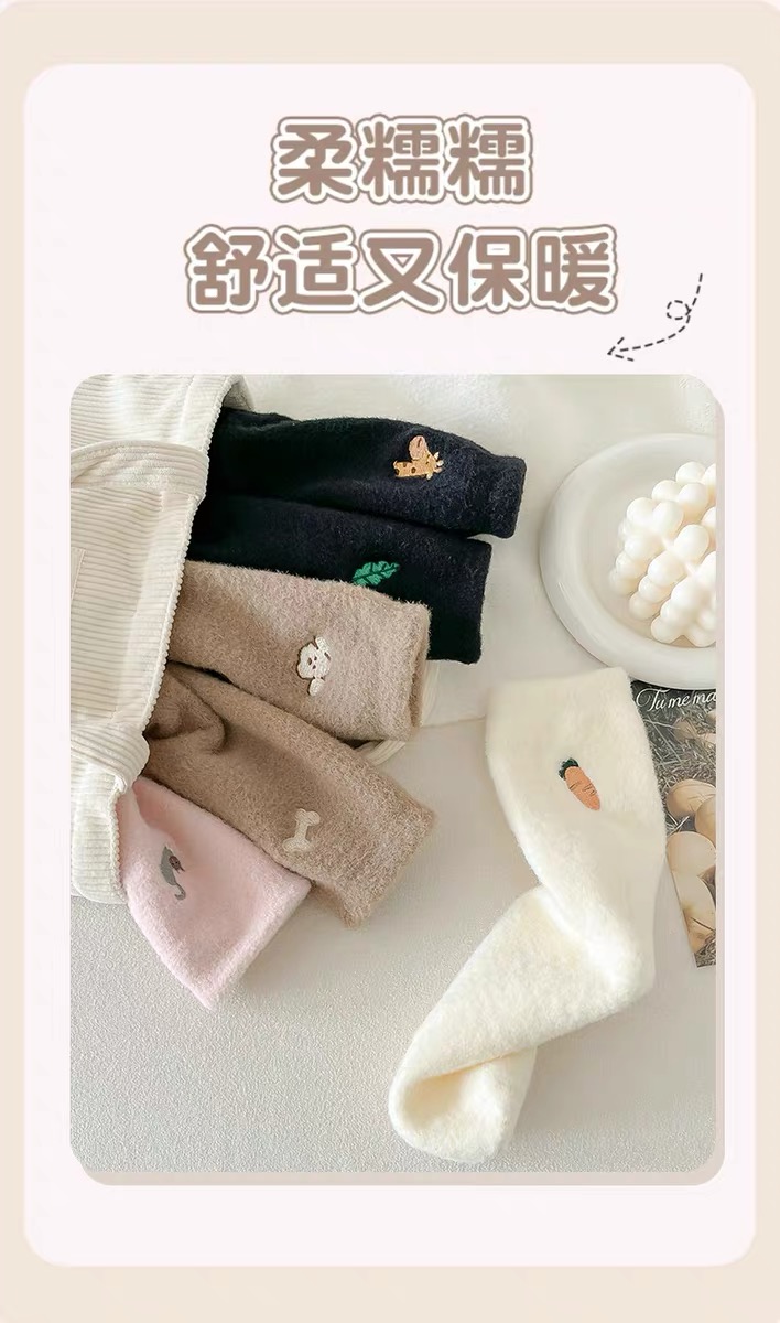 商品名称:【4双装】可爱毛绒袜子女中筒袜秋冬季加绒加厚保暖奥绒睡眠袜毛茸茸月子袜