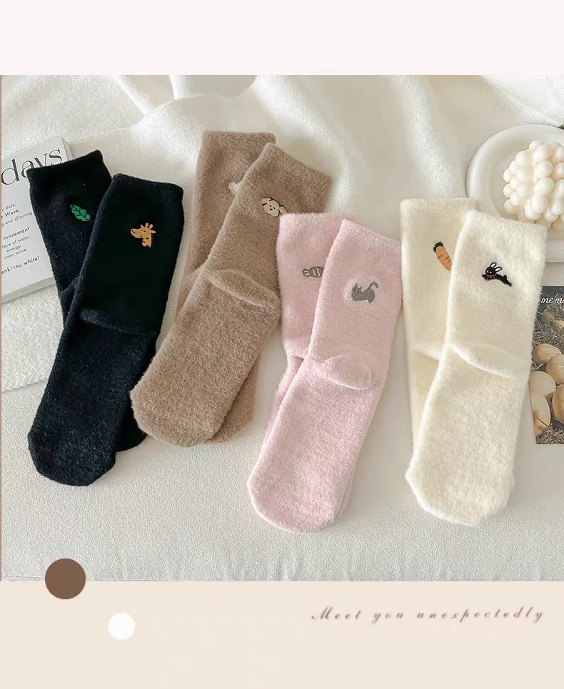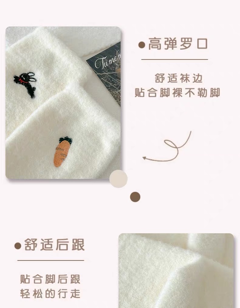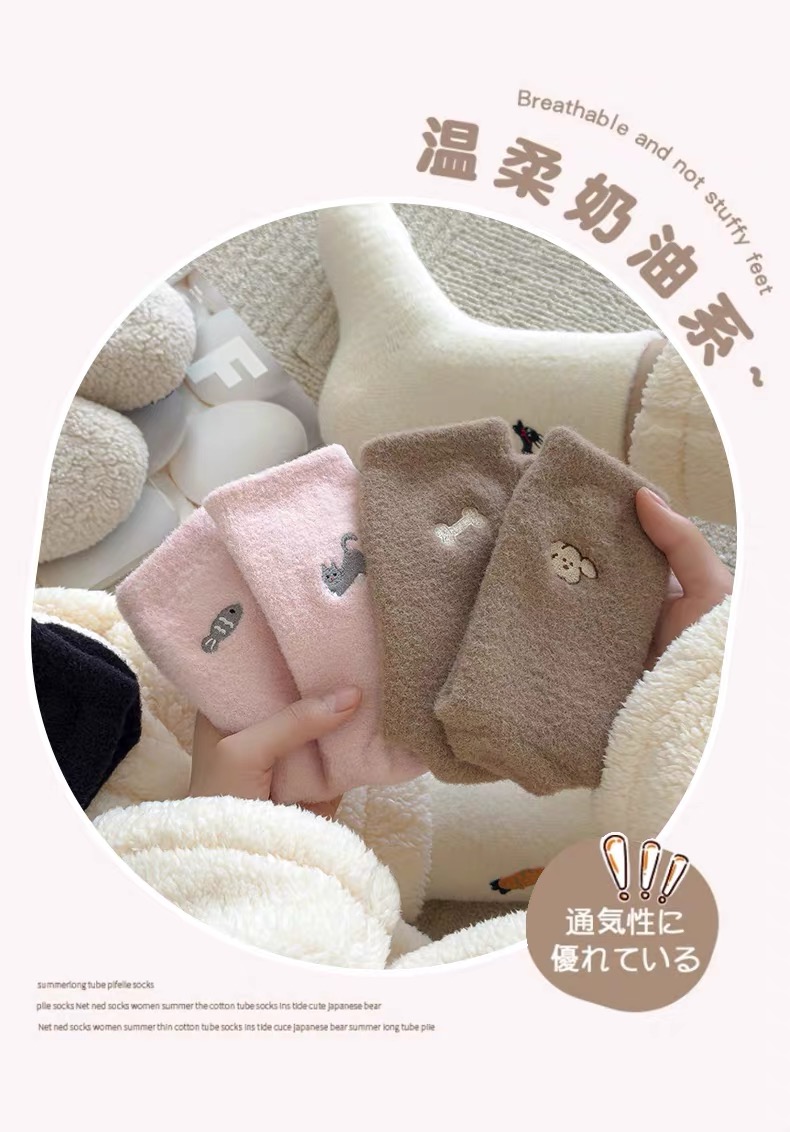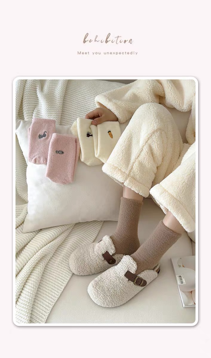商品名称:【4双装】可爱毛绒袜子女中筒袜秋冬季加绒加厚保暖奥绒睡眠袜毛茸茸月子袜