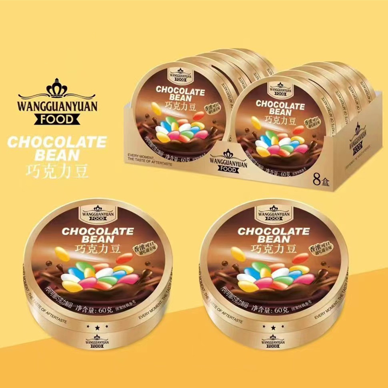 商品名称:糖果总动员铁盒树莓糖巧克力豆维c果汁软糖创意铁盒包装糖果零食超市供货60g/个