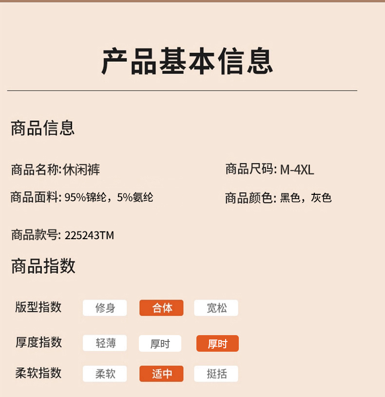 商品名称:曼西尔奴男士简约休闲舒适百搭抽绳松紧弹力休闲裤225243TM