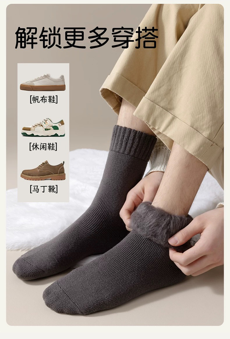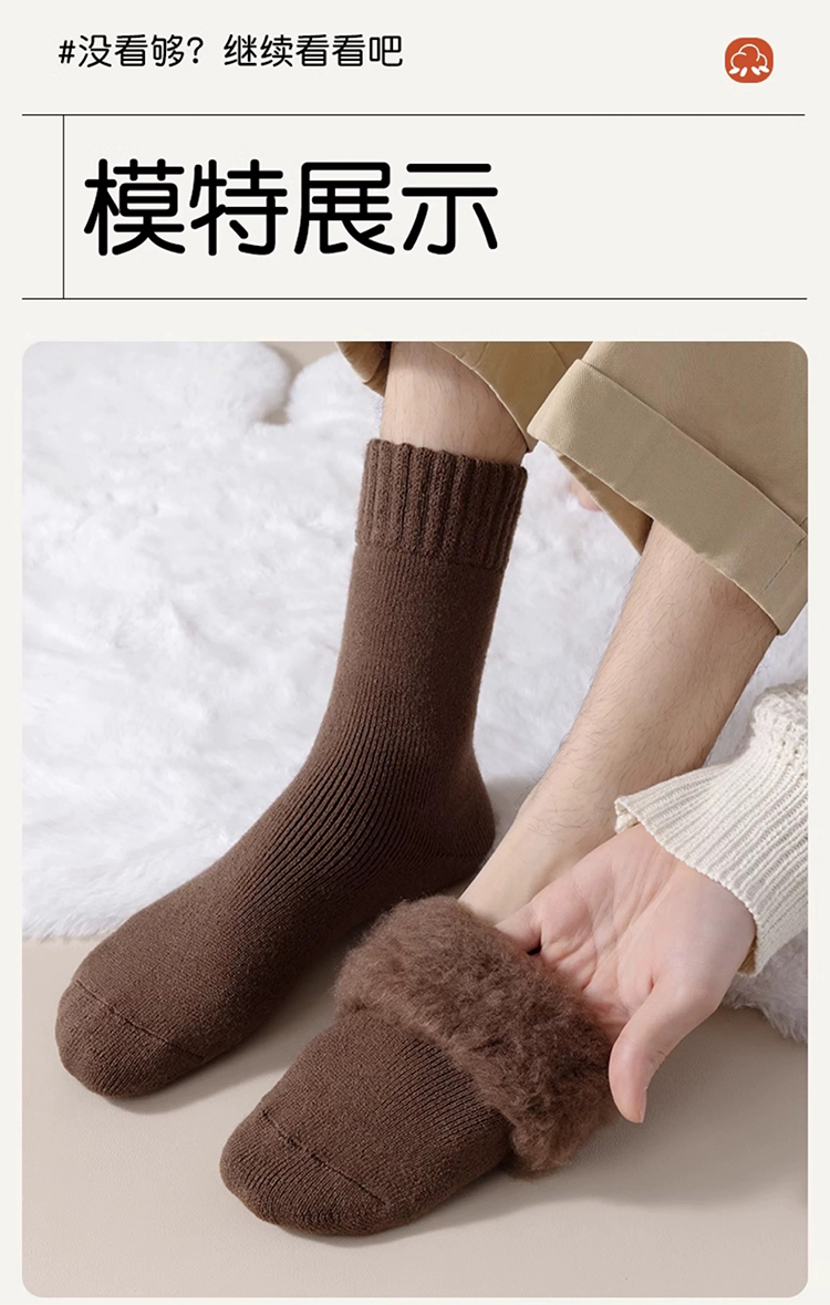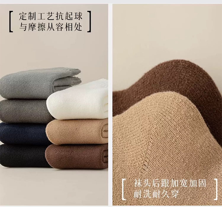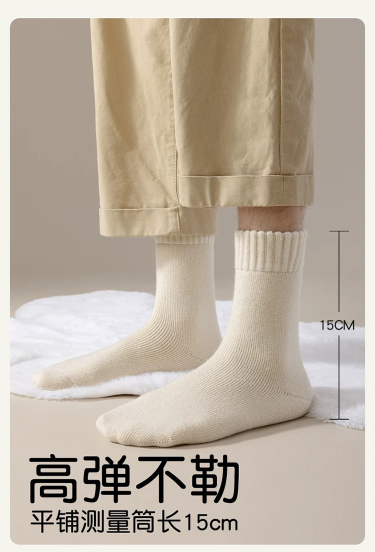 商品名称:【5双装】羊绒袜子男秋冬季加绒加厚中筒棉袜保暖地板毛巾袜冬天长筒羊毛袜