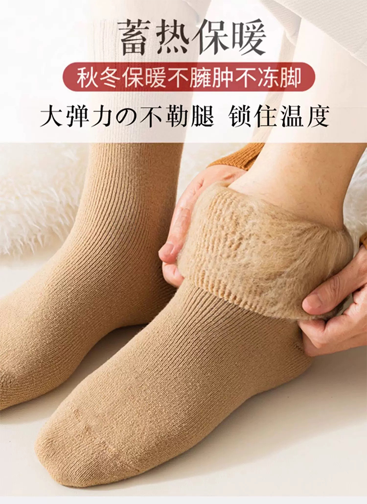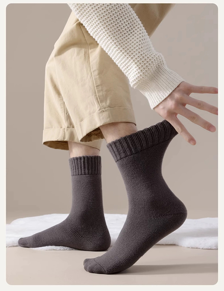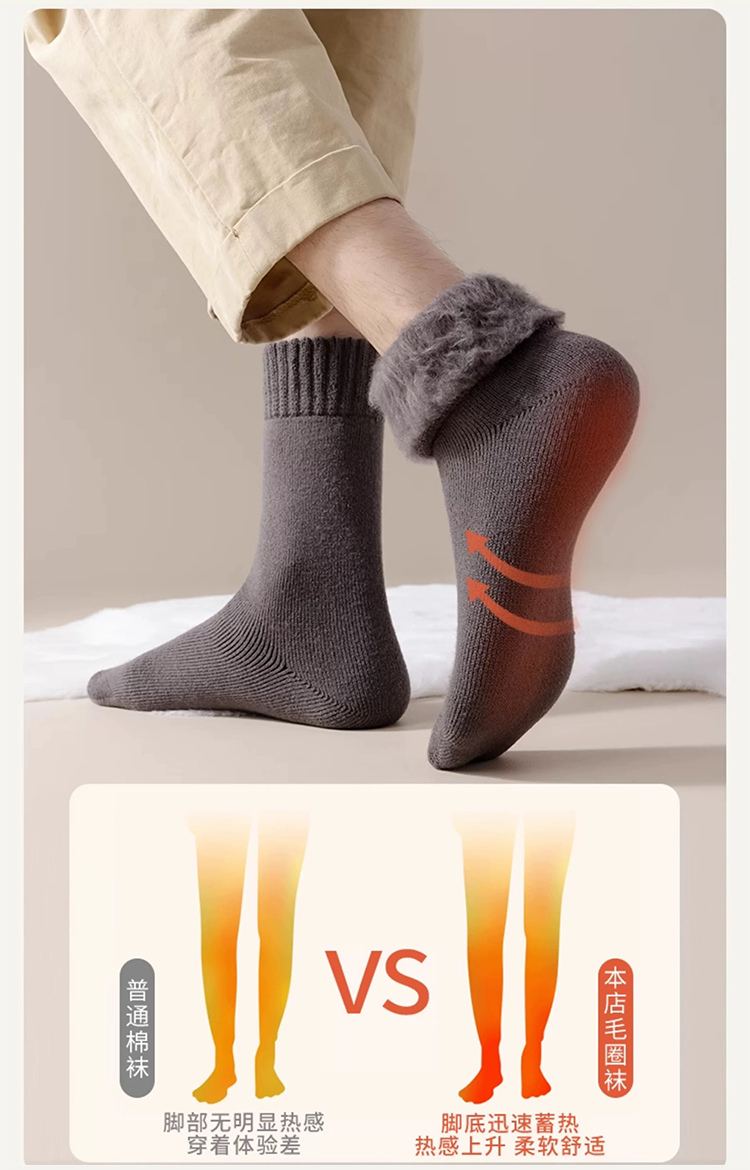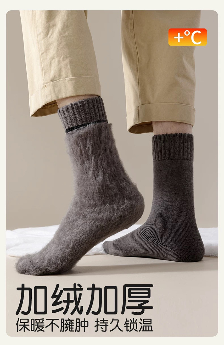 商品名称:【5双装】羊绒袜子男秋冬季加绒加厚中筒棉袜保暖地板毛巾袜冬天长筒羊毛袜