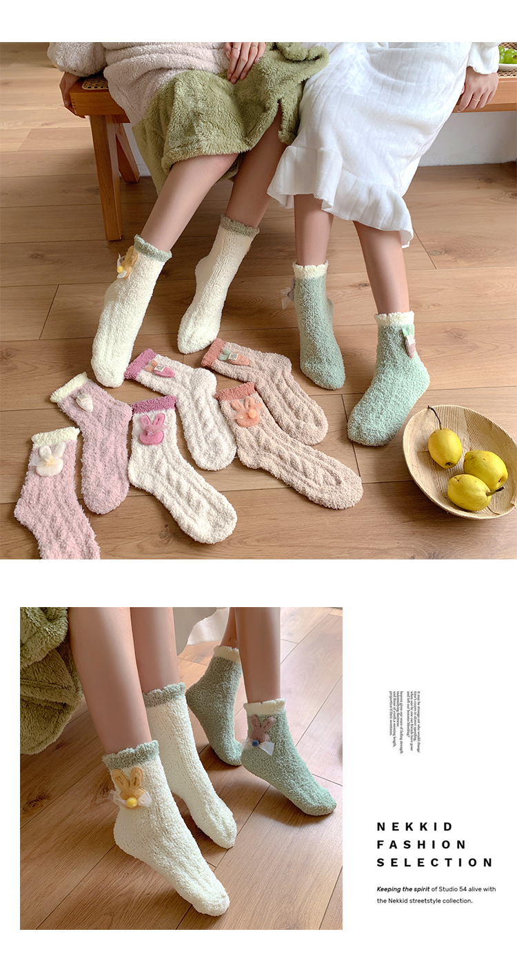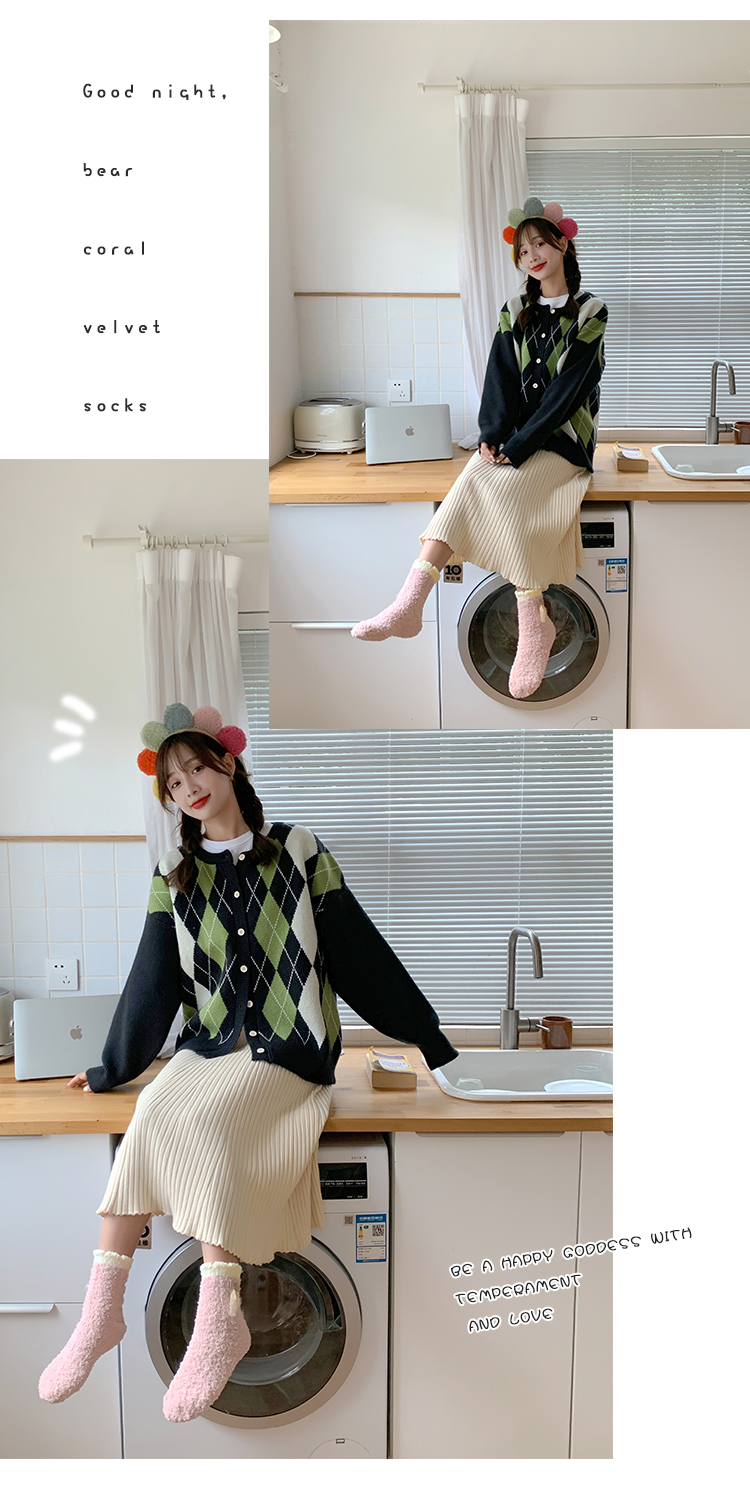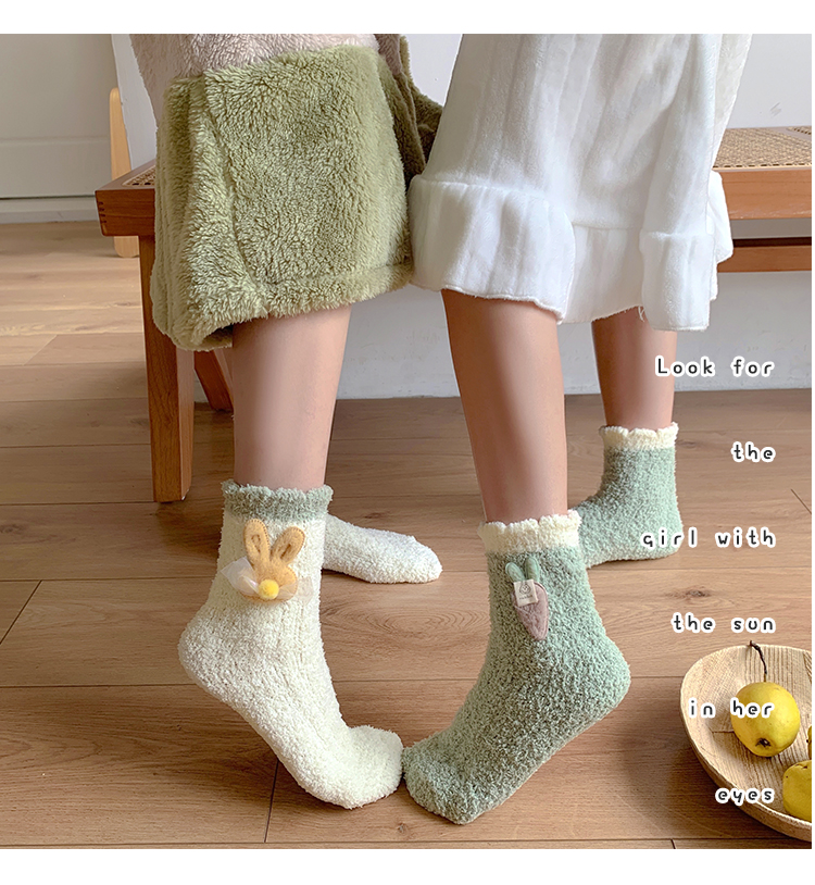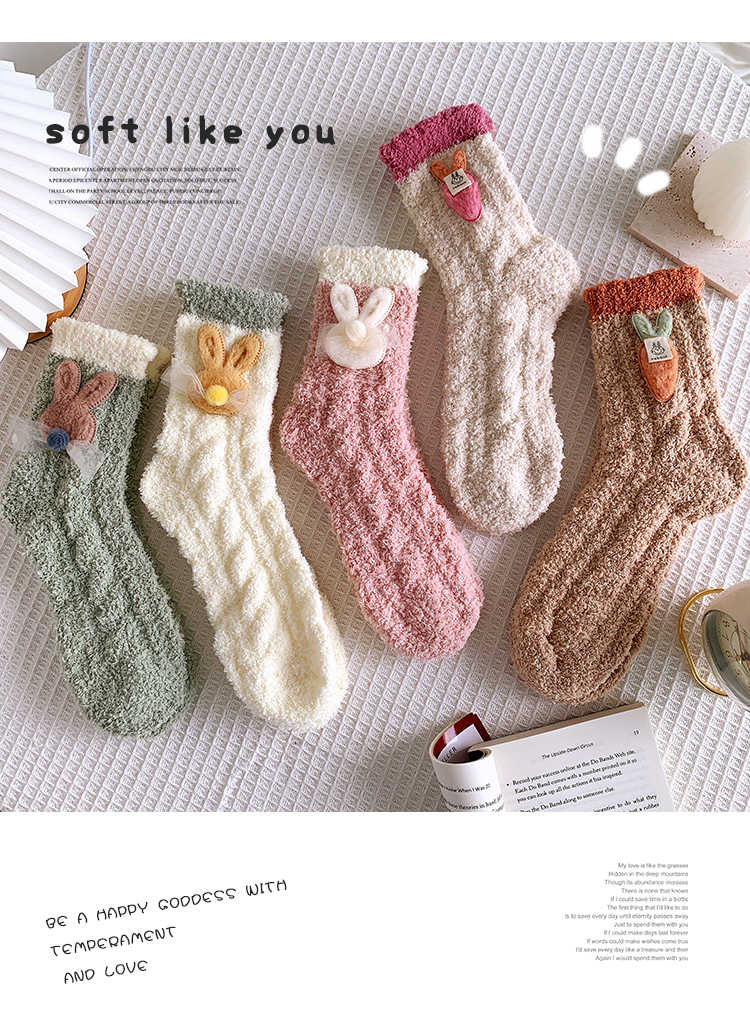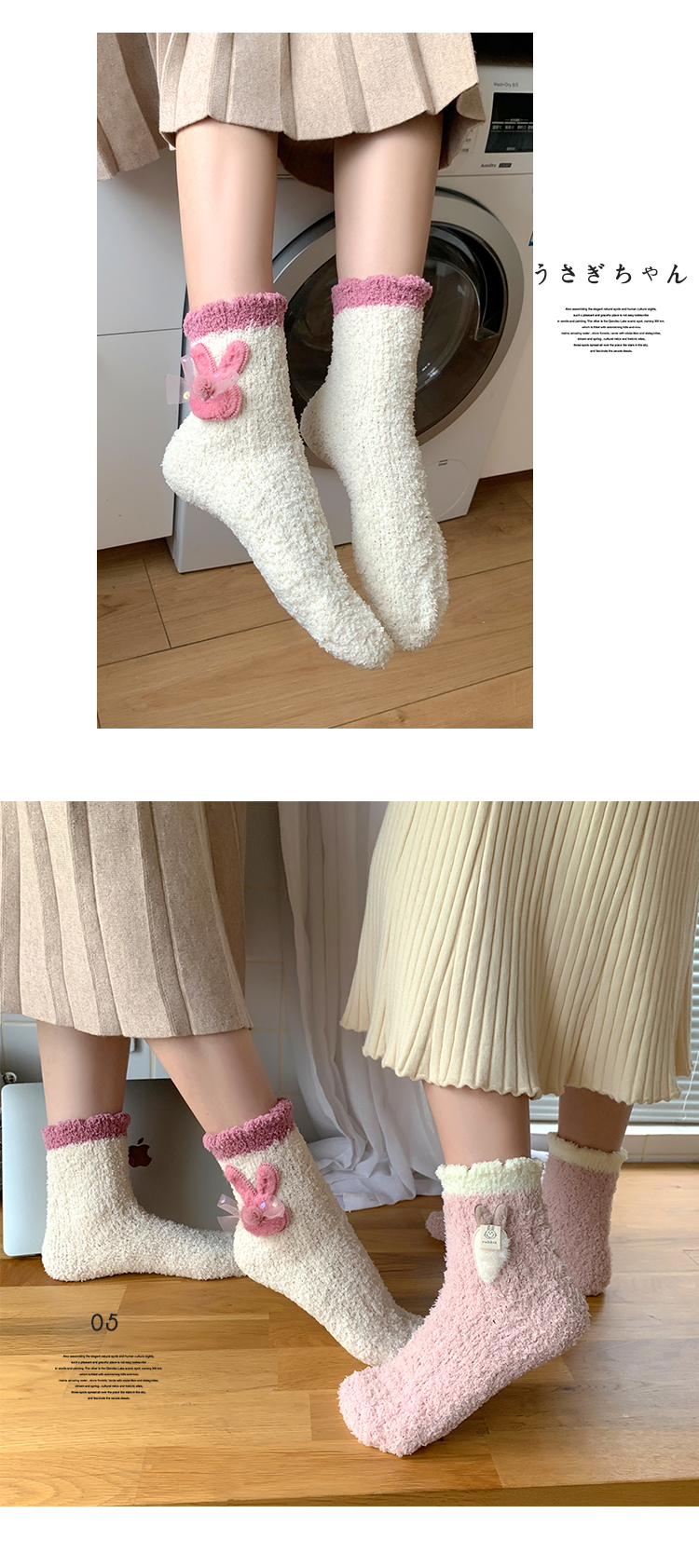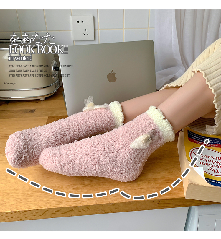 商品名称:【5双装】朝暮栖止珊瑚绒袜子女冬加厚保暖可爱睡眠居家地板月子毛绒中筒袜