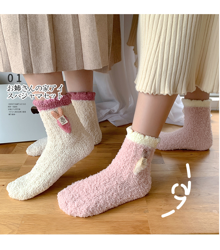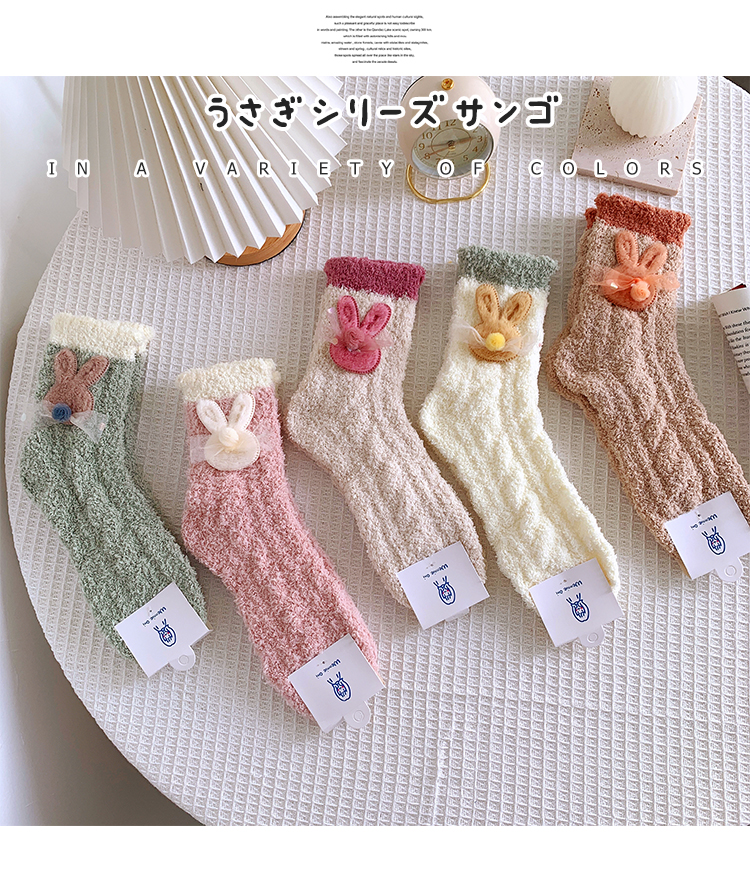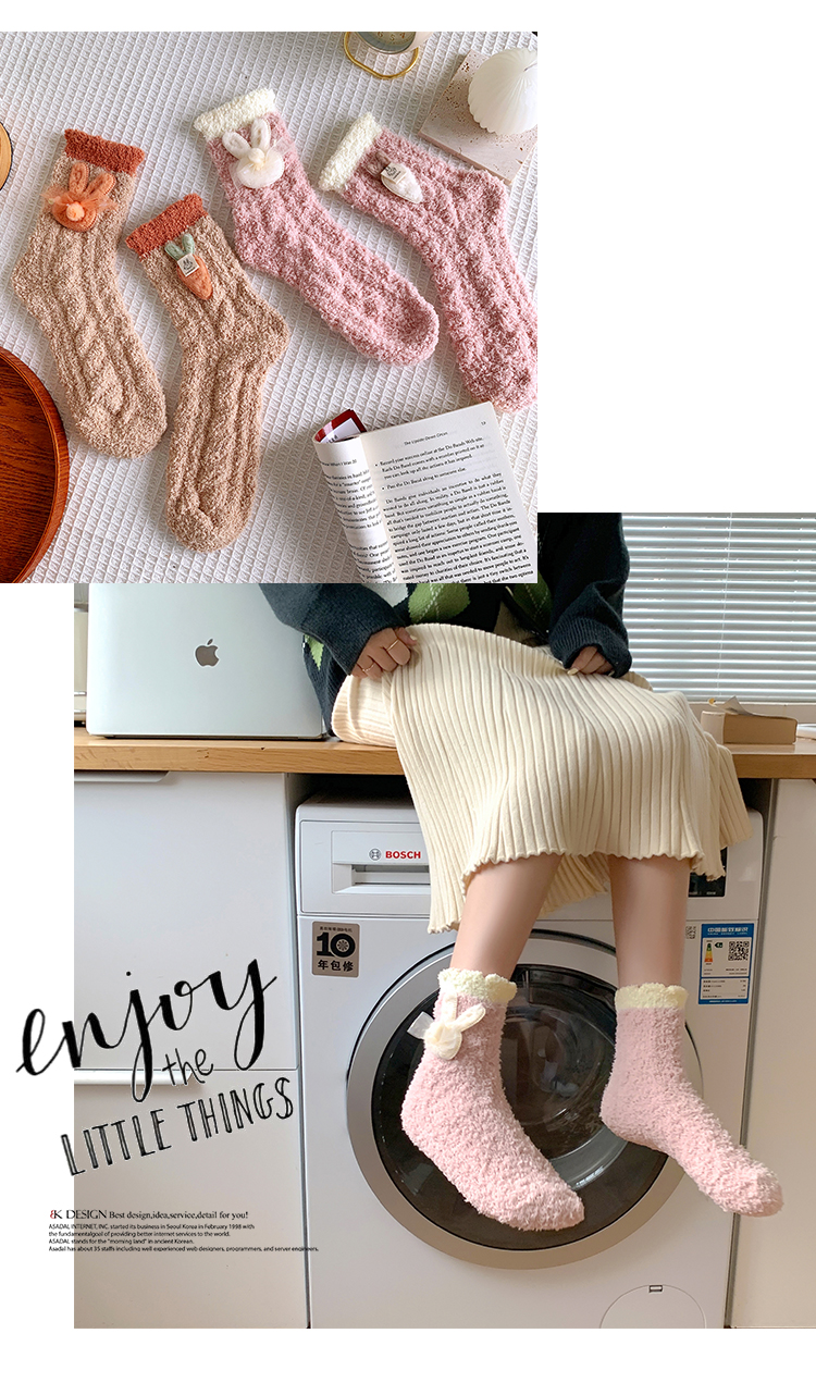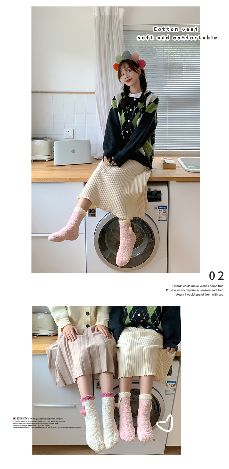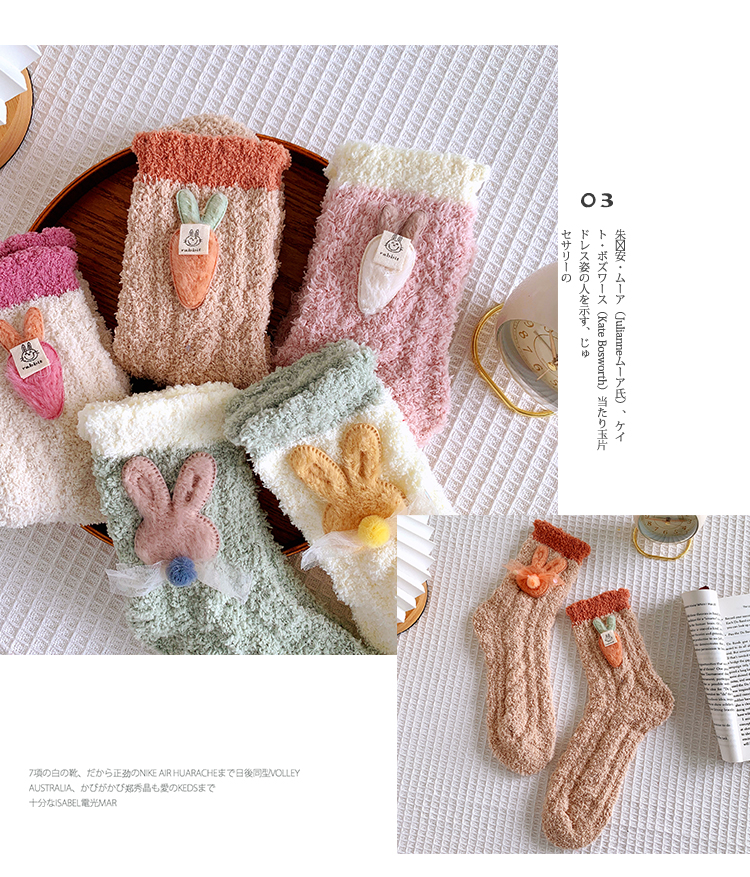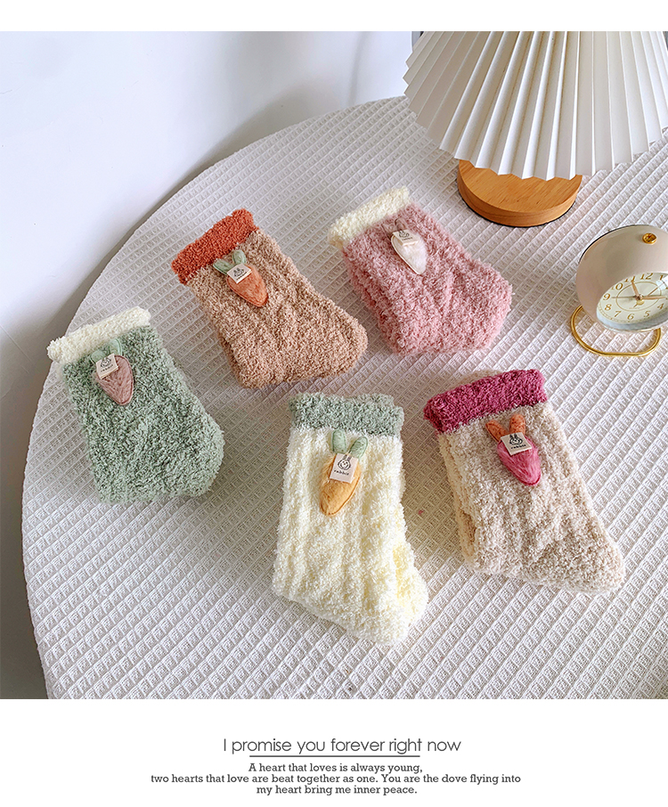 商品名称:【5双装】朝暮栖止珊瑚绒袜子女冬加厚保暖可爱睡眠居家地板月子毛绒中筒袜