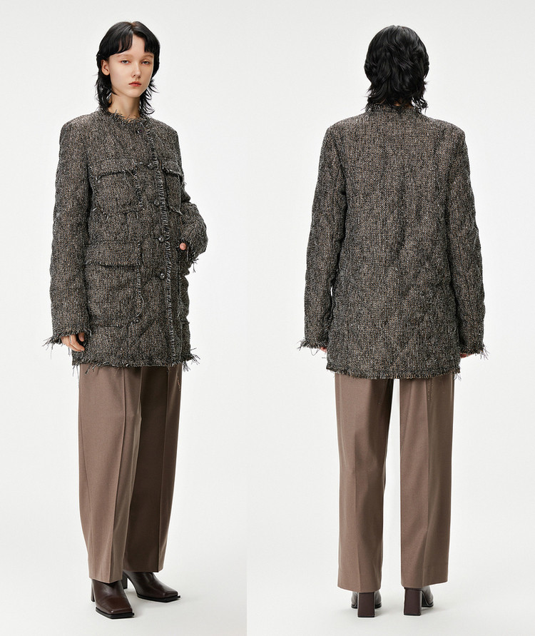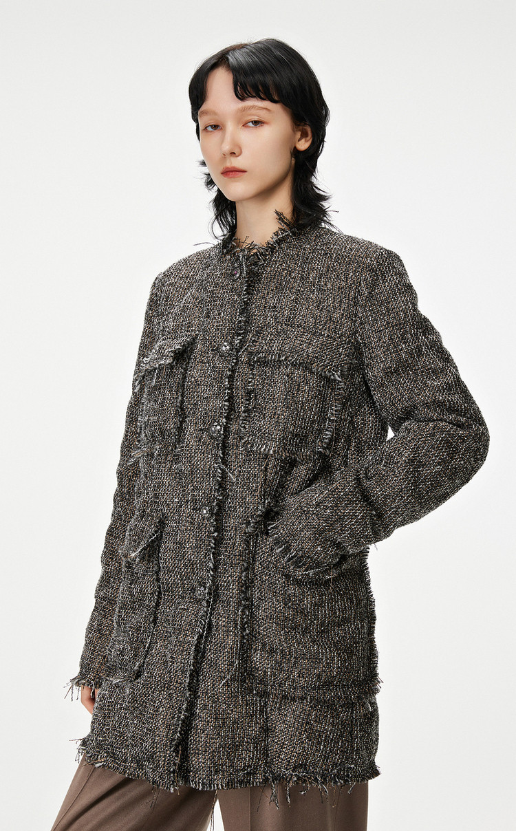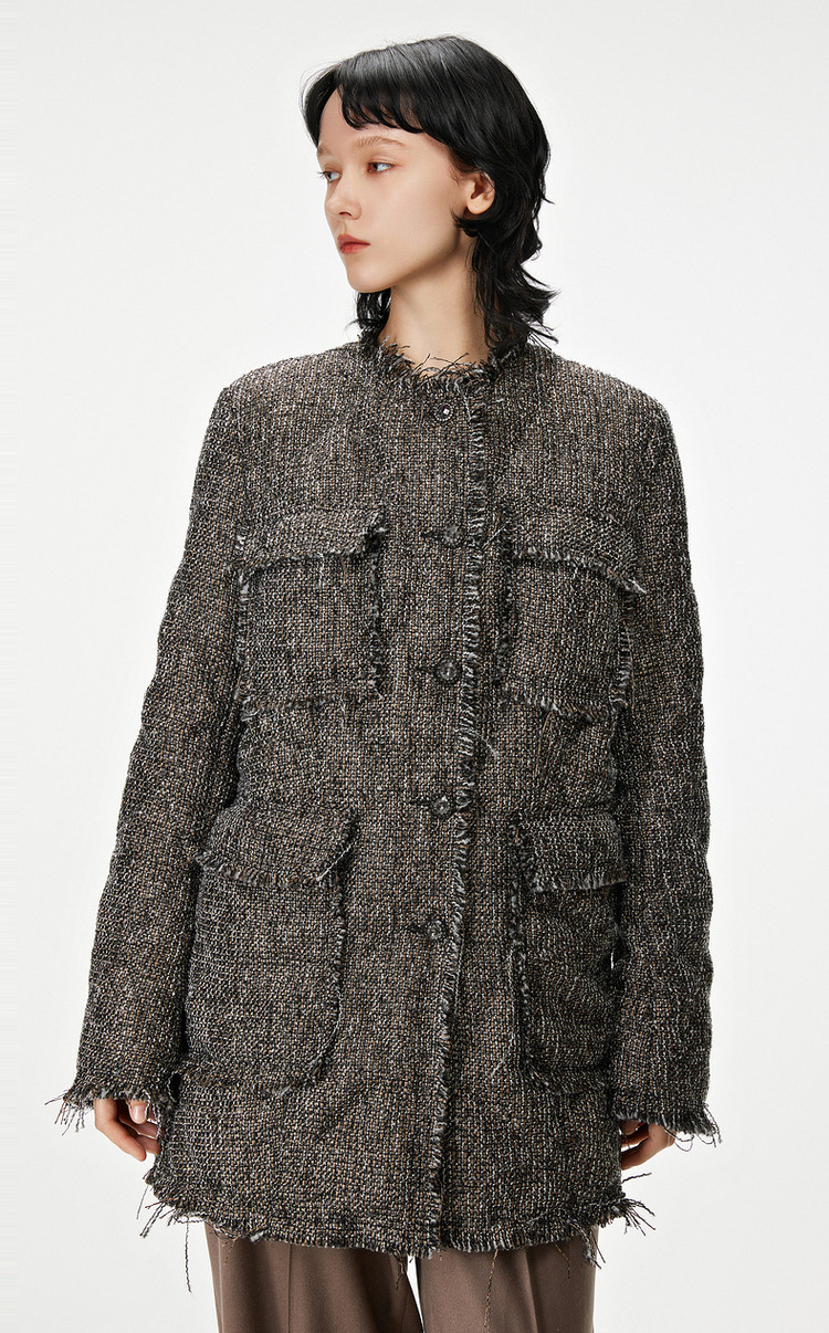 春呢大衣宽松立领长袖外套女 139723