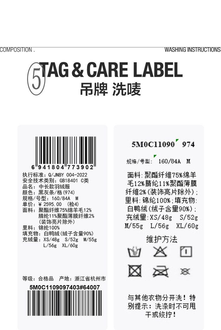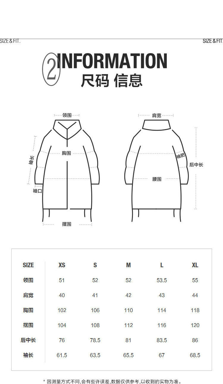 商品名称:冬羽绒服宽松长袖H型外套女 811019