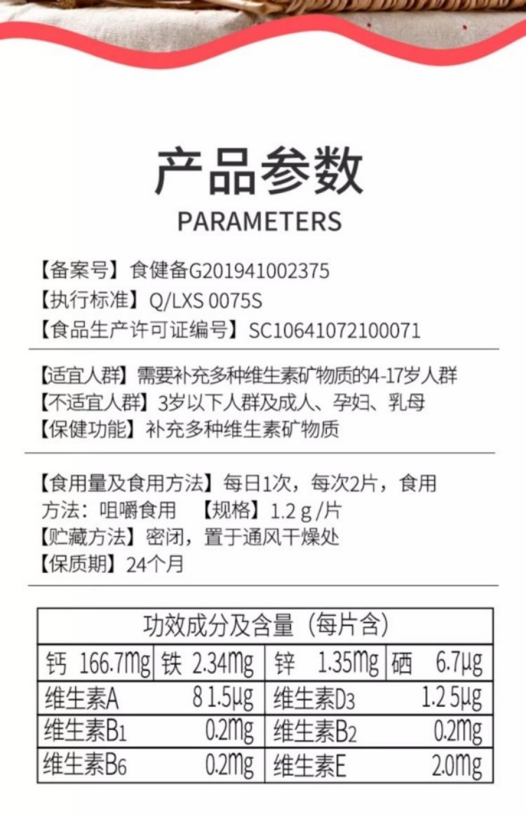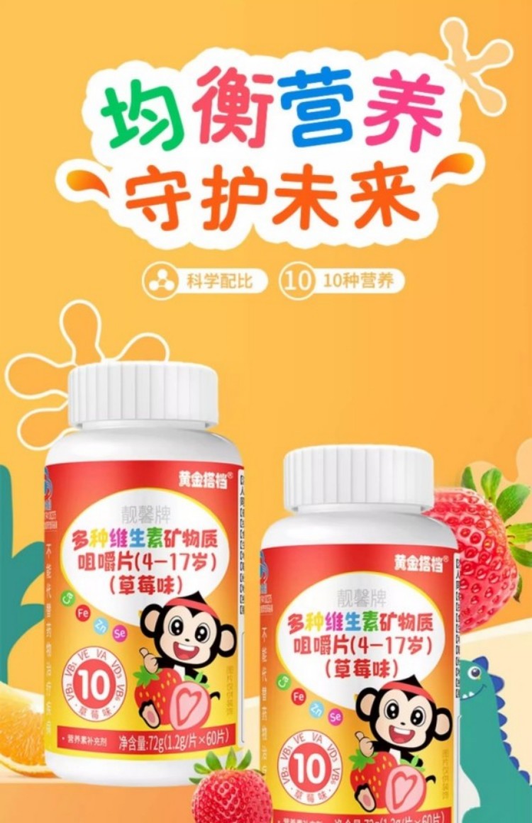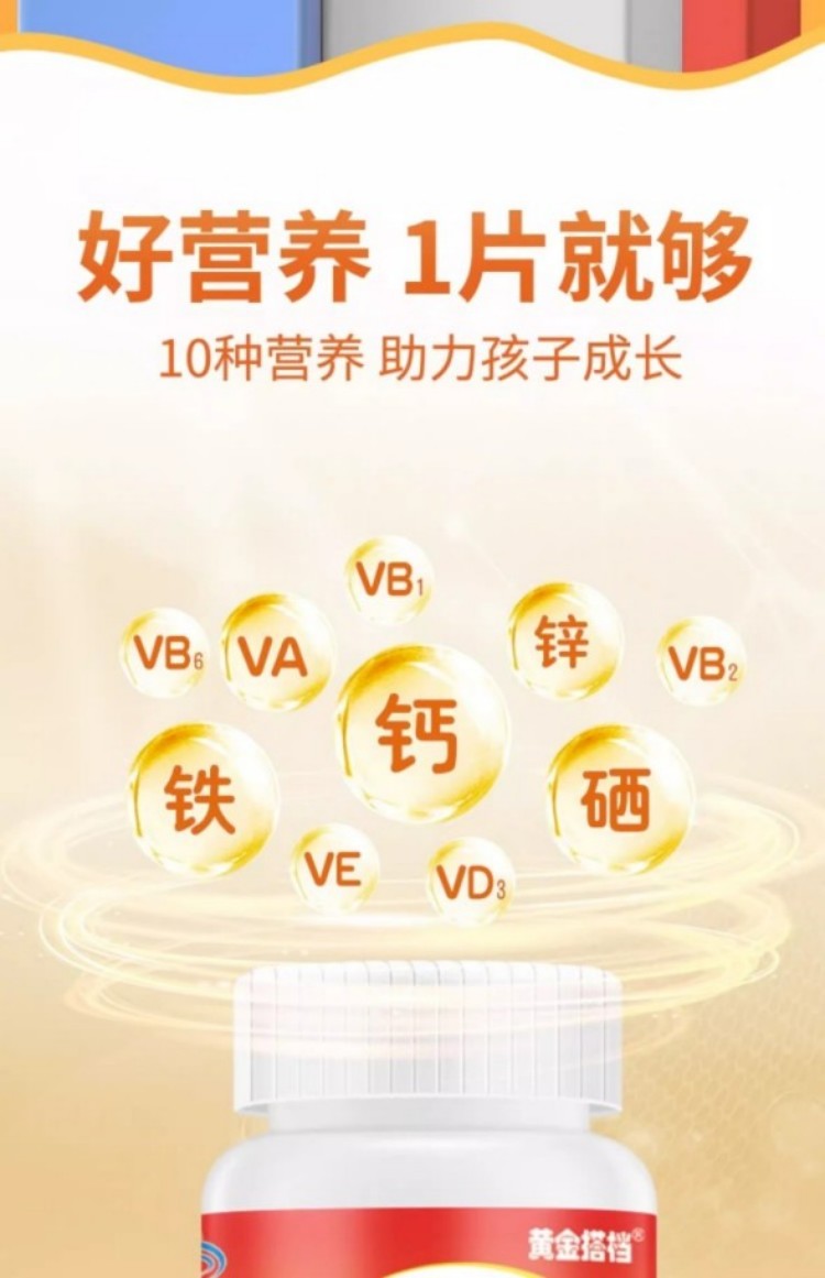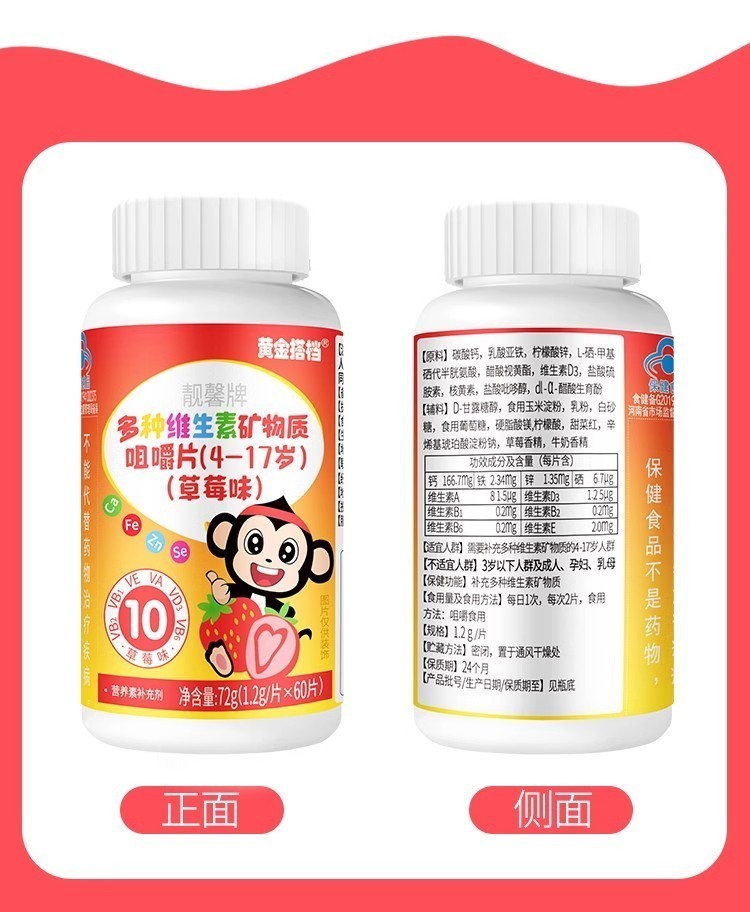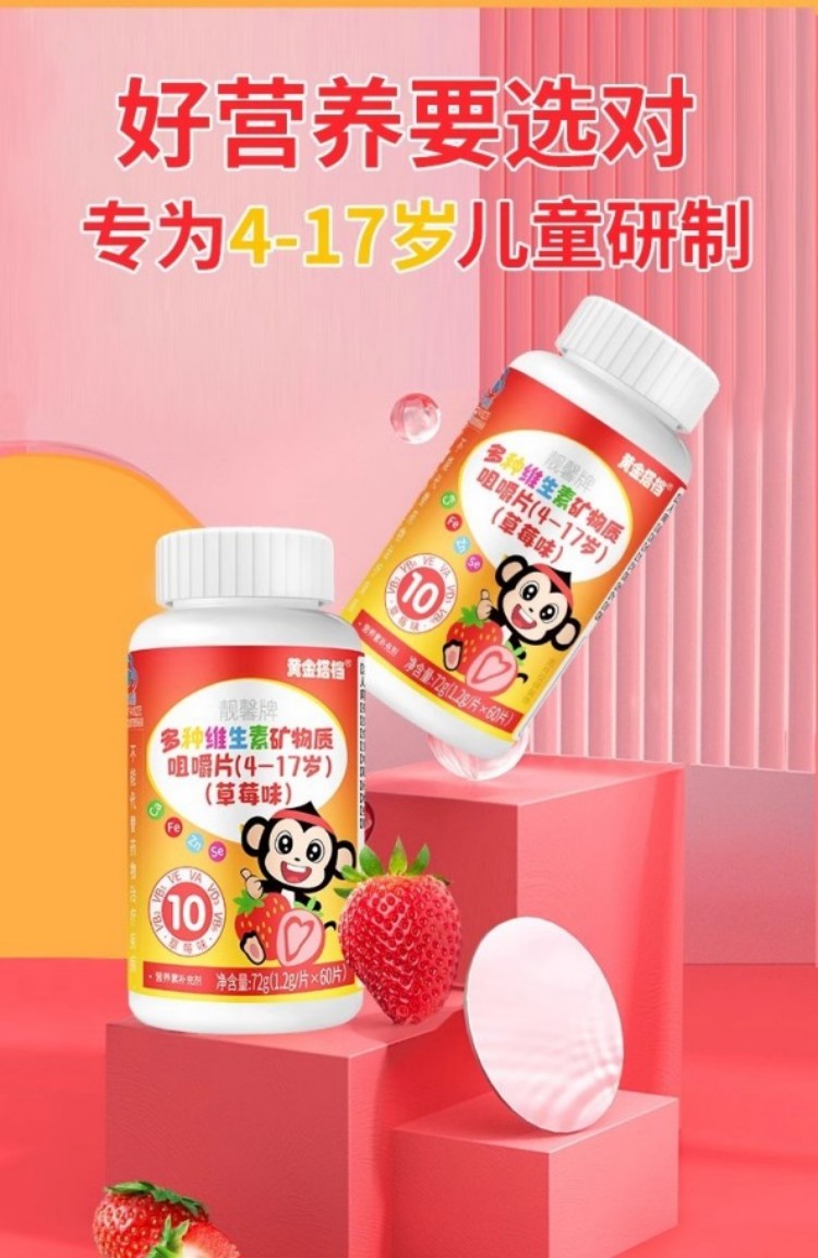 商品名称:黄金/搭档儿童多种维生素咀嚼片复合维生素b族钙铁锌学生青少年钙片60粒