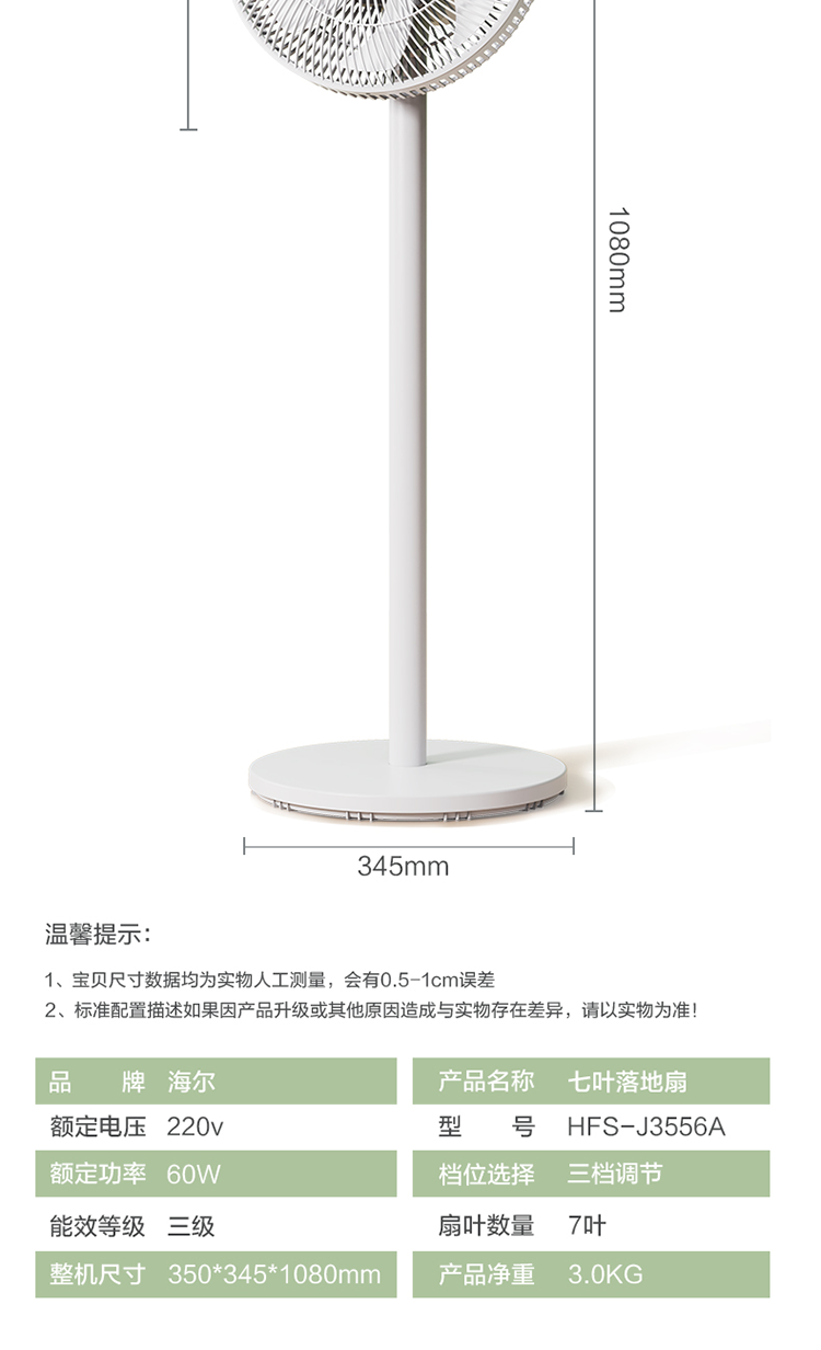 商品名称:Haier/海尔机械款落地扇HFS-J3556A