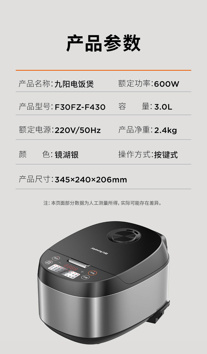 商品名称:【京东/顺丰/德邦配送】Joyoung九阳3升电饭煲F30FZ-F430