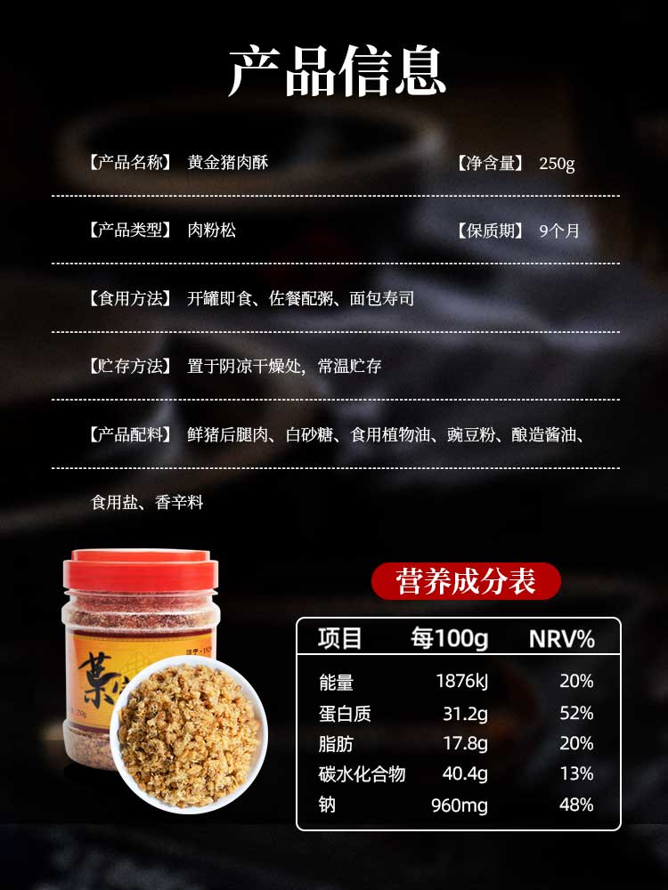 商品名称:叶家记肉松黄金猪肉酥250g