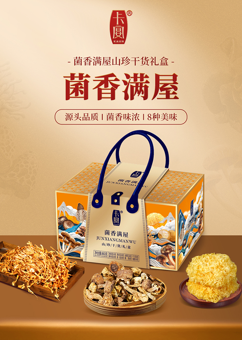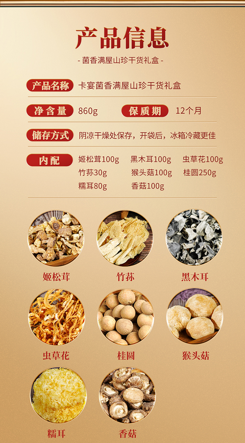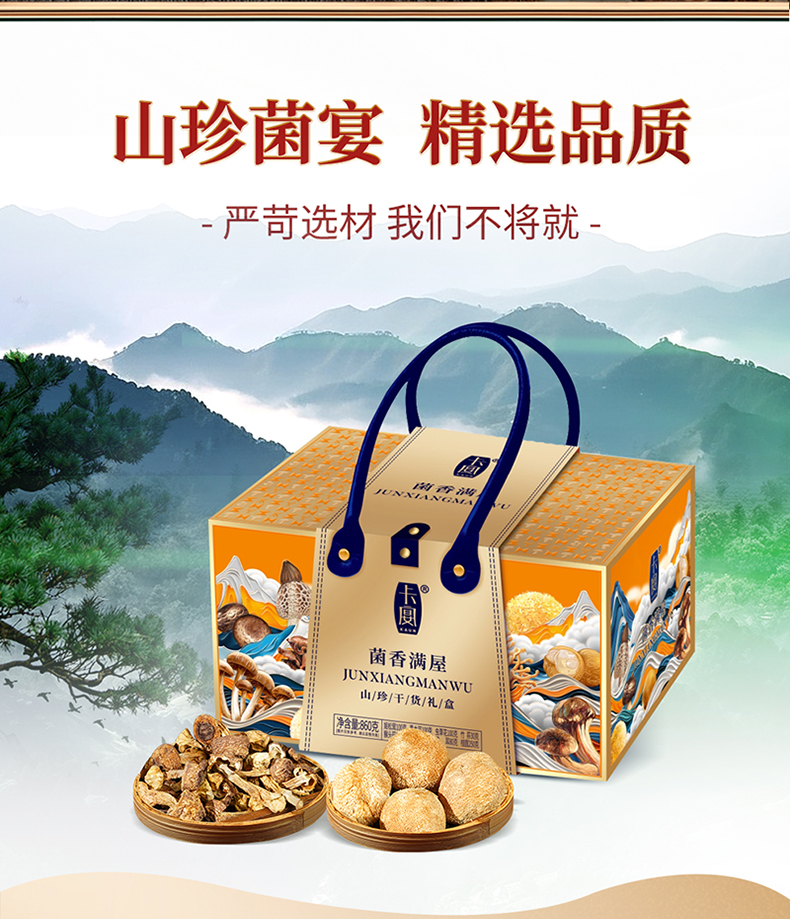 商品名称:卡宴菌香满屋山珍干货礼盒860g