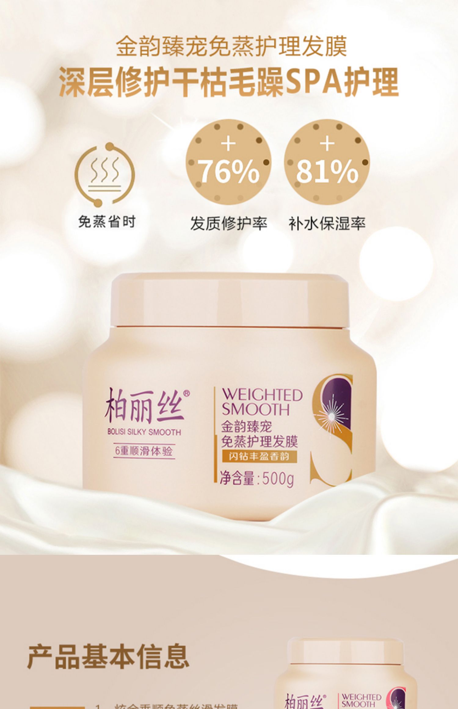柏丽丝炫金垂顺免蒸护理发膜500ml