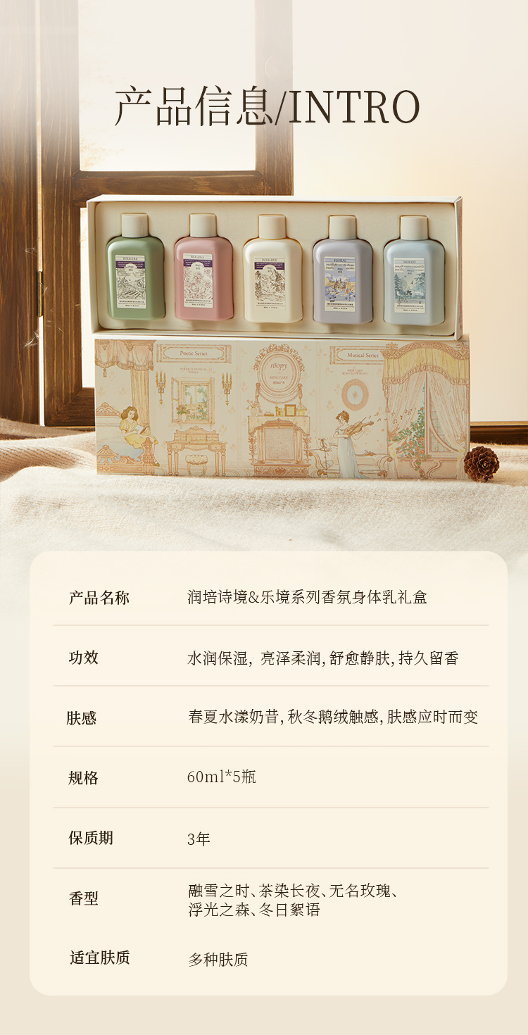 商品名称:roopy/润培香氛身体乳礼盒60ml*5瓶