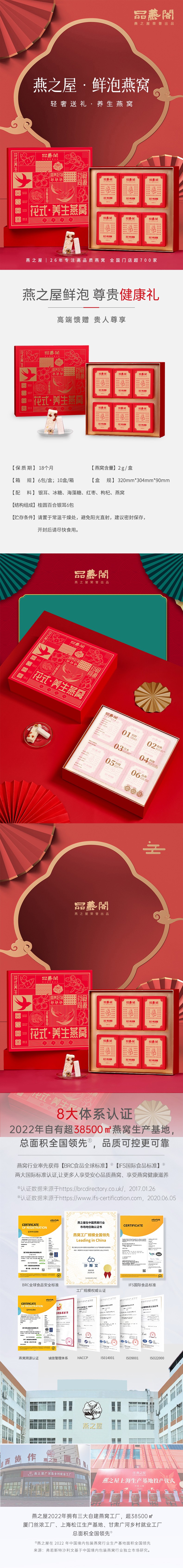 商品名称:YANPALACE/燕之屋品燕閣中国红花式养生燕窝礼盒15g*6包