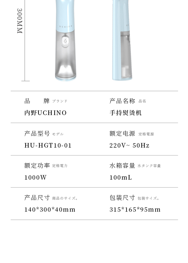 商品名称:UCHINO/内野手持熨烫机HU-HGT10-01