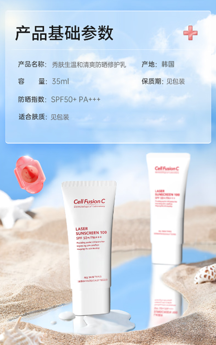 商品名称:秀肤生温和清爽防晒修护乳SPF50+PA+++35ml(一般贸易版)