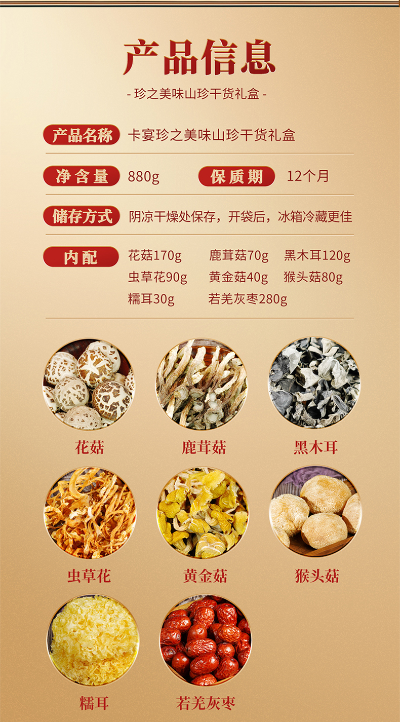 商品名称:卡宴珍之美味山珍干货礼盒880g