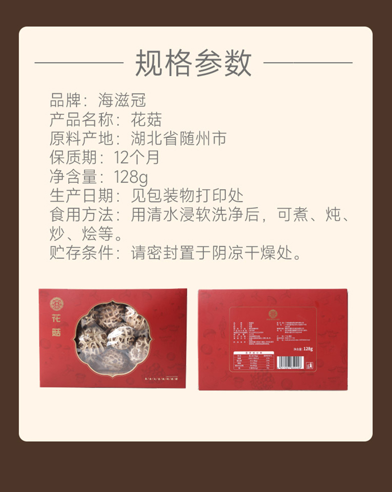 商品名称:海滋冠花菇128g
