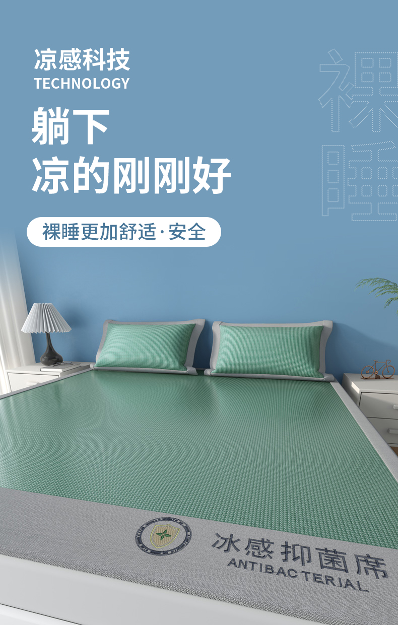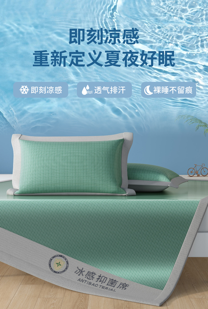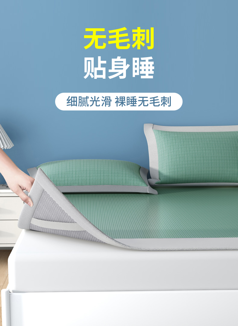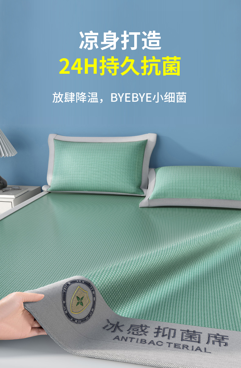商品名称:BeGaMan/彼加曼抗菌凉感碳光冰藤席三件套-冰绿180*200cm BGM-XL253