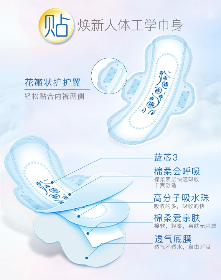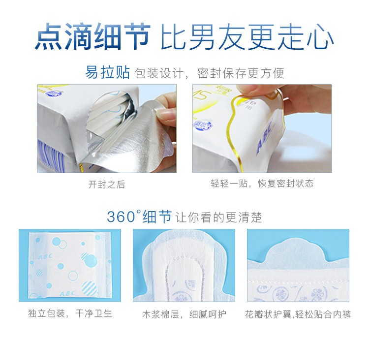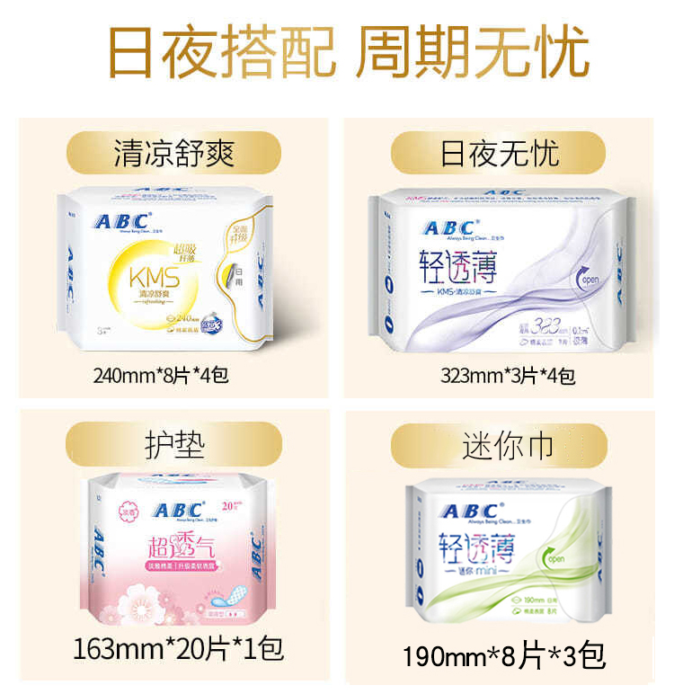 ABC卫生巾日夜组合装(夜用323mm12片+日用240mm32片+迷你巾190mm*24片+护垫163mm*20片)