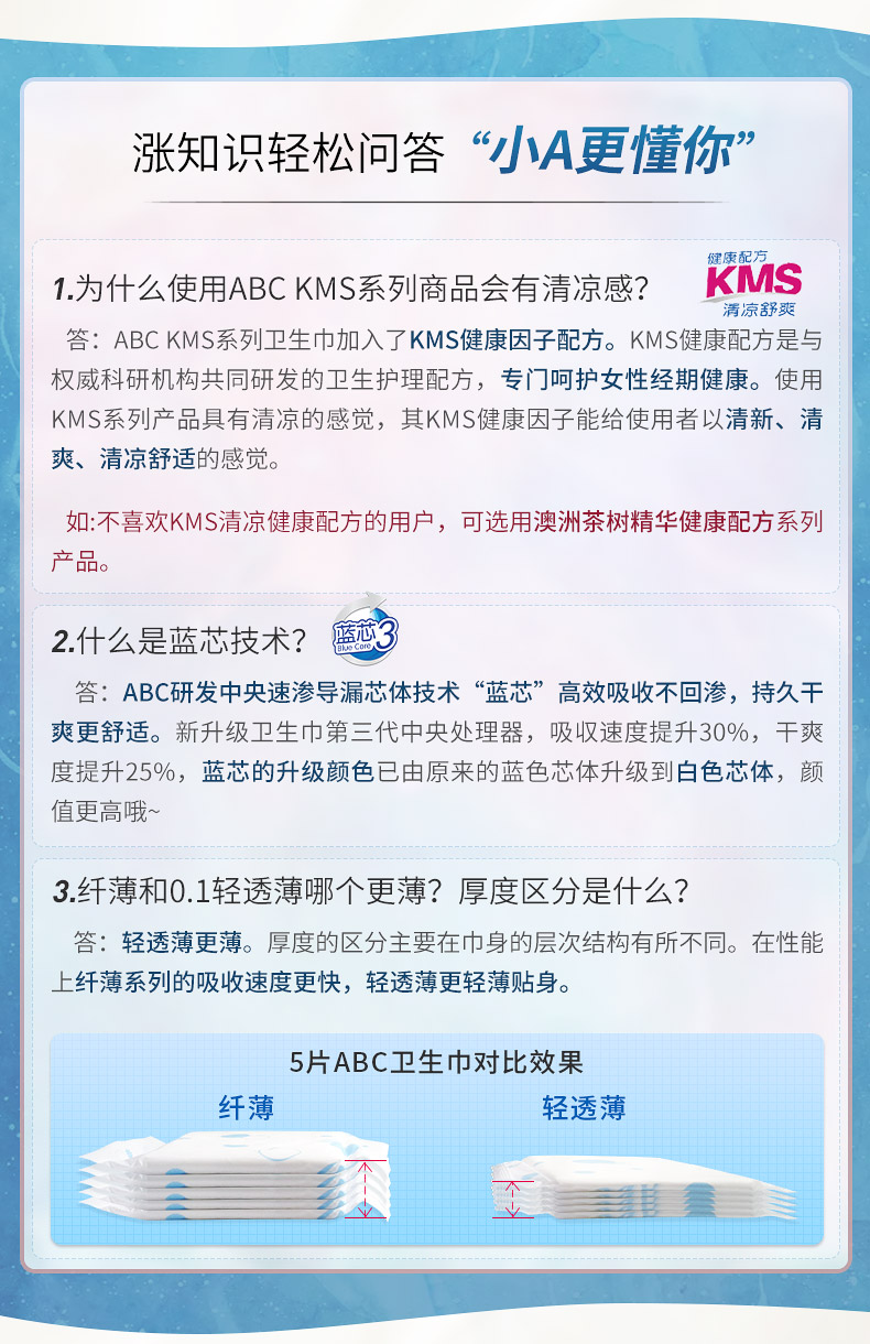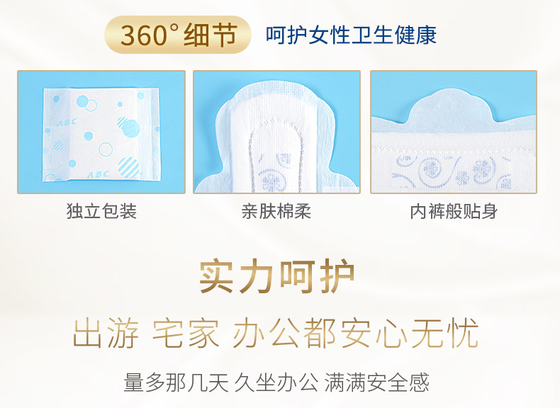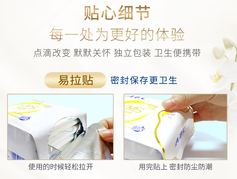 商品名称:ABC日用夜用卫生巾组合装(日用240mm*24片+夜用323mm*6片+护垫163mm*20片)