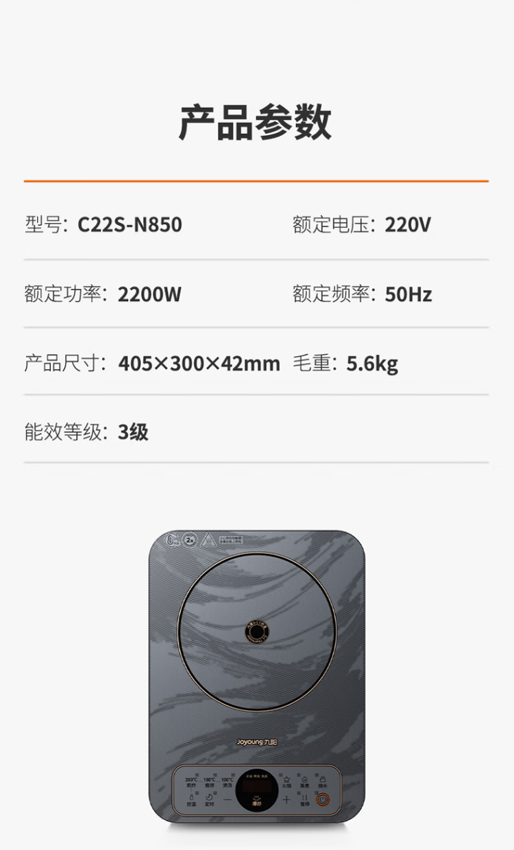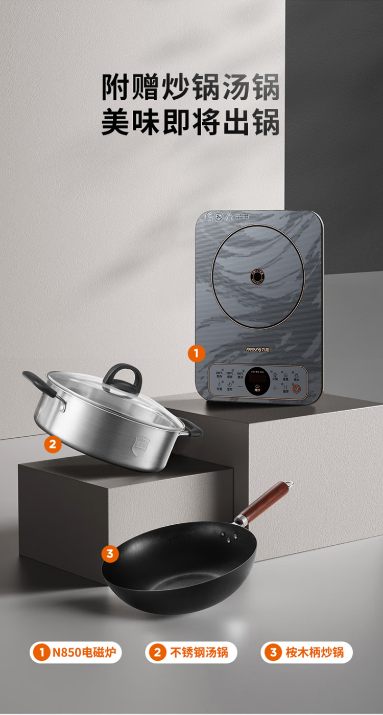 商品名称:【京东/顺丰/德邦配送】Joyoung/九阳商超高端款防辐射电磁炉+汤锅+炒锅C22S-N850