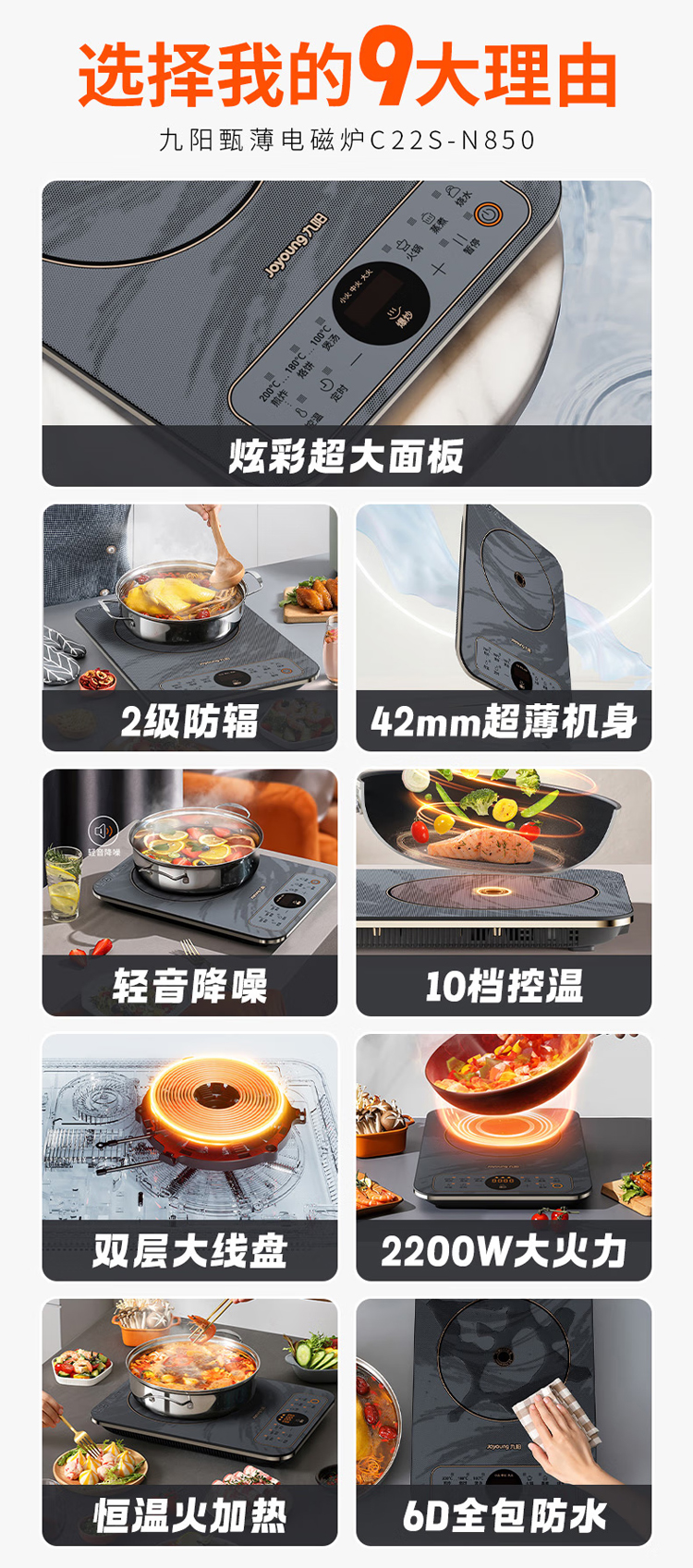 【京东/顺丰/德邦配送】Joyoung/九阳商超高端款防辐射电磁炉+汤锅+炒锅C22S-N850
