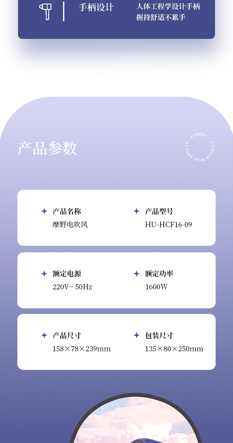 商品名称:UCHINO/内野摩野电吹风HU-HCF16-09