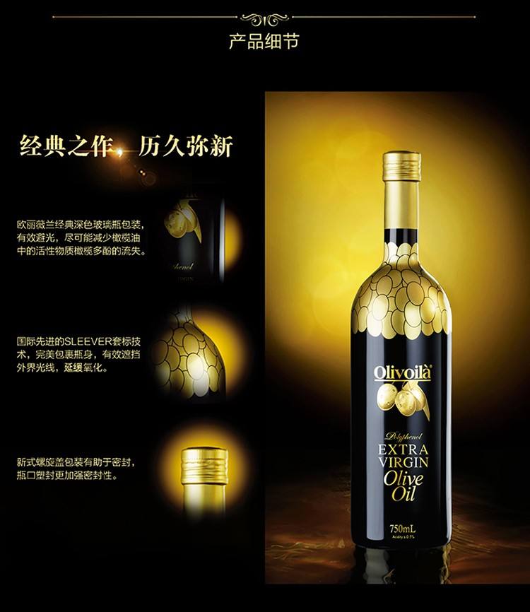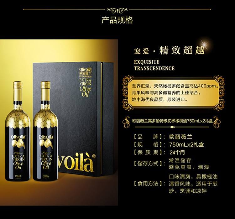 商品名称:【京东/顺丰配送】Olivoila/欧丽薇兰高多酚特级初榨橄榄油黑色礼盒750ml*2瓶