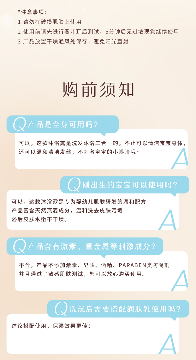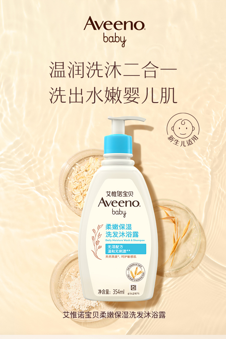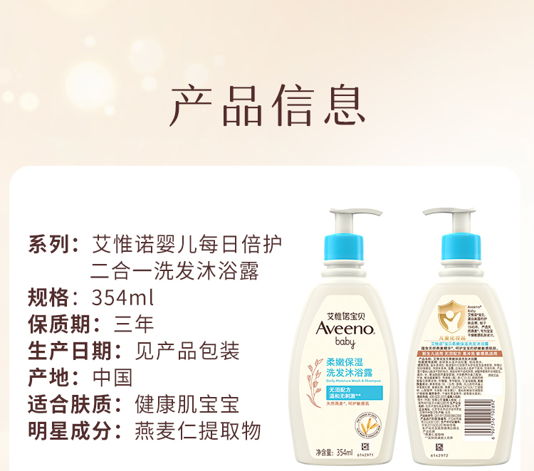 商品名称:Aveeno/艾维诺 婴儿宝宝滋润洗发沐浴露2合1 淡香型 354ML