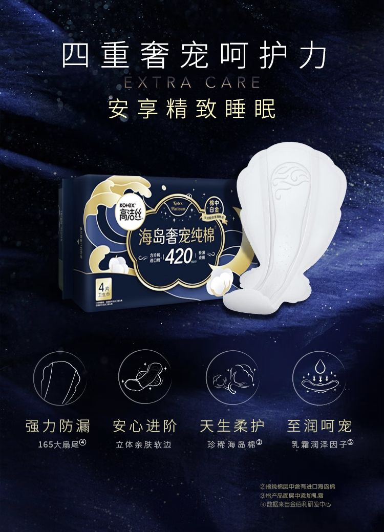 商品名称:高洁丝 海岛奢宠极薄纯棉 夜用 420mm*4片